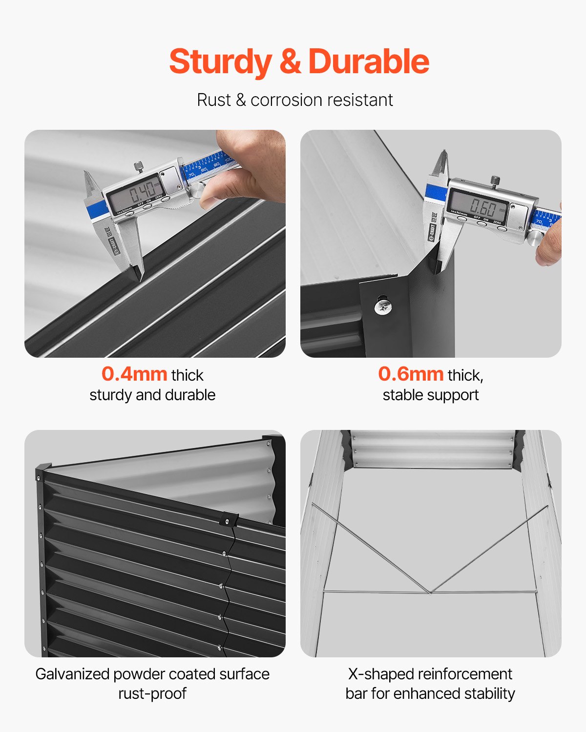VEVOR Metalna povišena vrtna gredica, 1800x895x600mm, Pocinčana vanjska žardinjera s otvorenim dnom, Velika gredica za uzgoj povrća, cvijeća, začinskog bilja i sukulenata, tamno siva