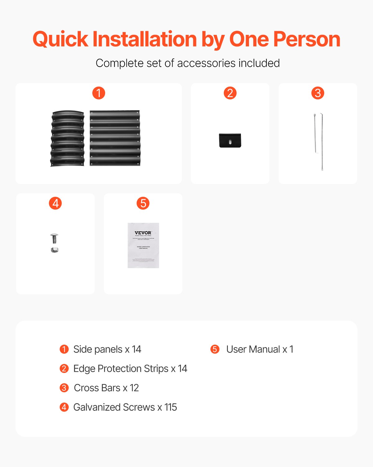 VEVOR Metalna povišena vrtna gredica, 240x60x56cm, Pocinčana vanjska žardinjera s otvorenim dnom, Ovalna gredica za uzgoj povrća, cvijeća, začinskog bilja i sukulenata, tamno siva