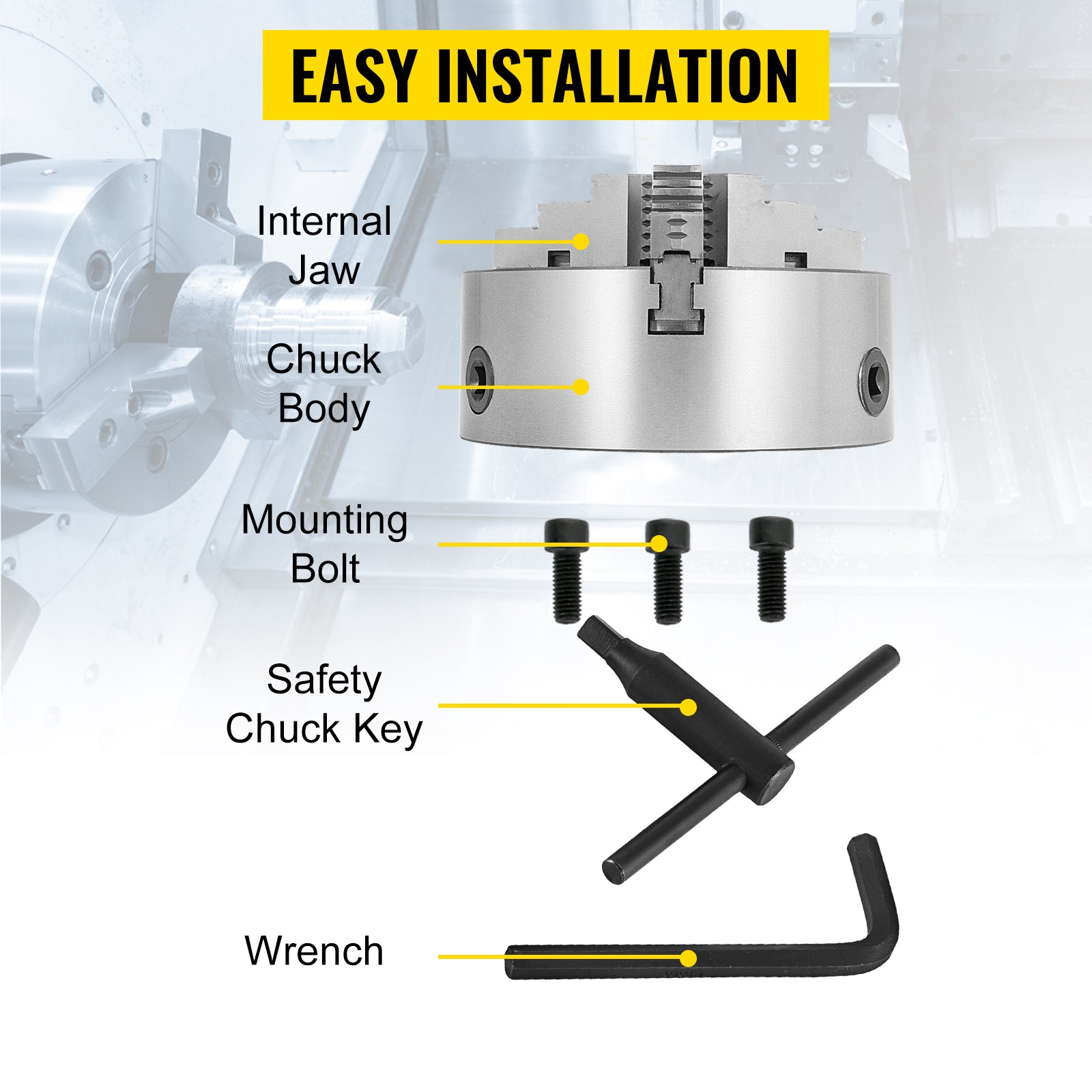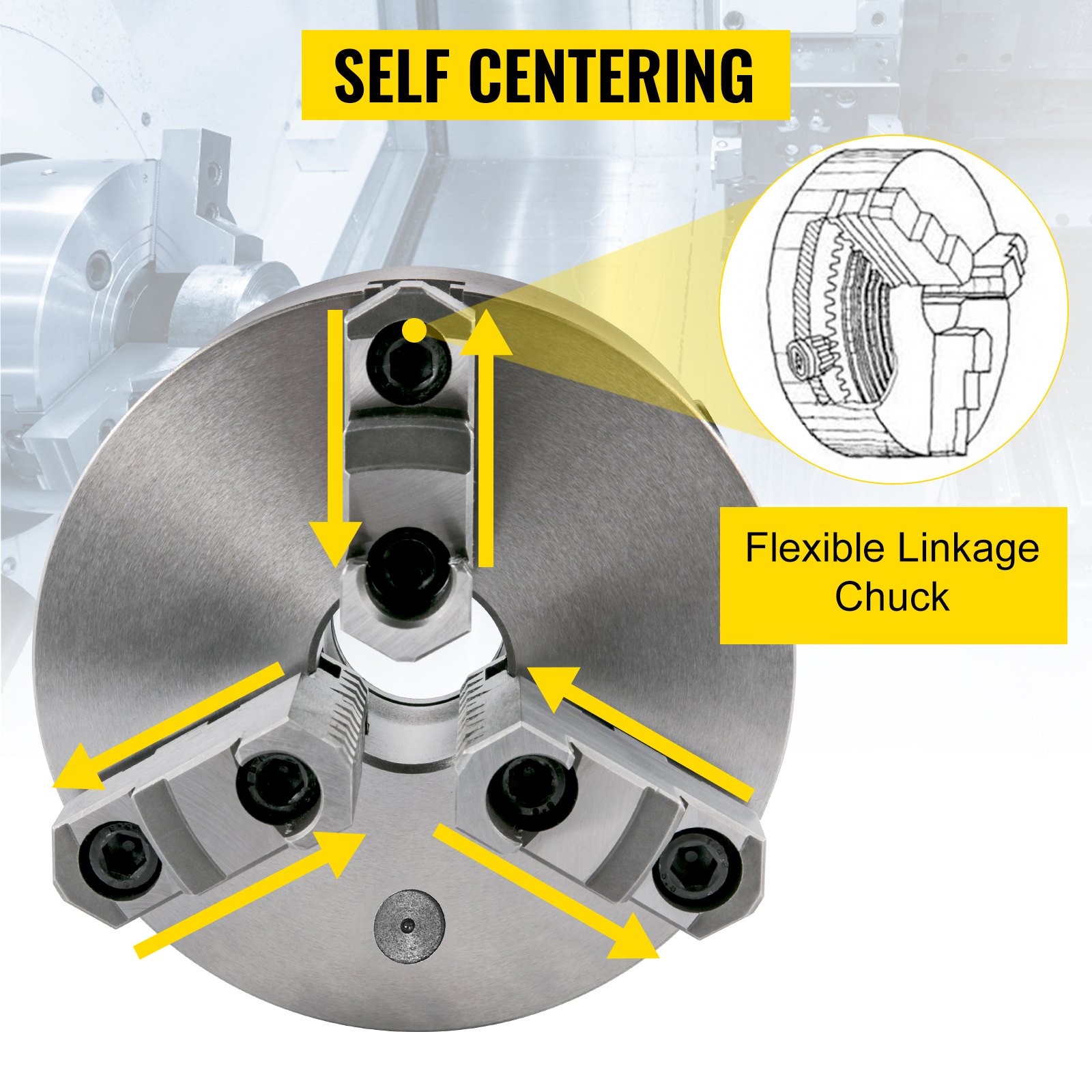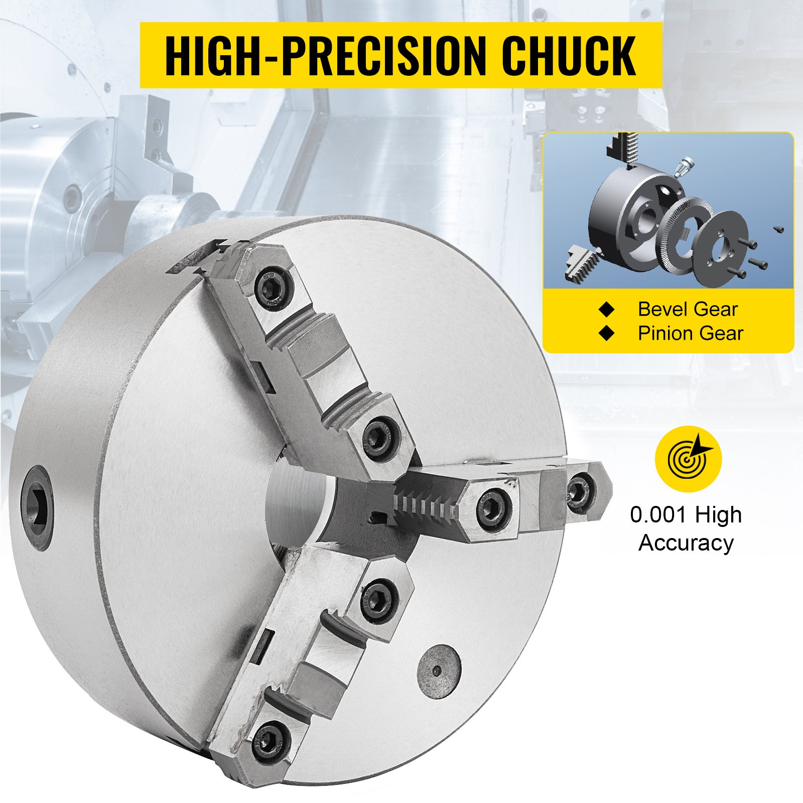 VEVOR stezna glava za metalni tokarilica K11-200A, tročeljusna stezna glava, samocentrirajući pribor za reverzibilni metalni tokarilica 200 mm