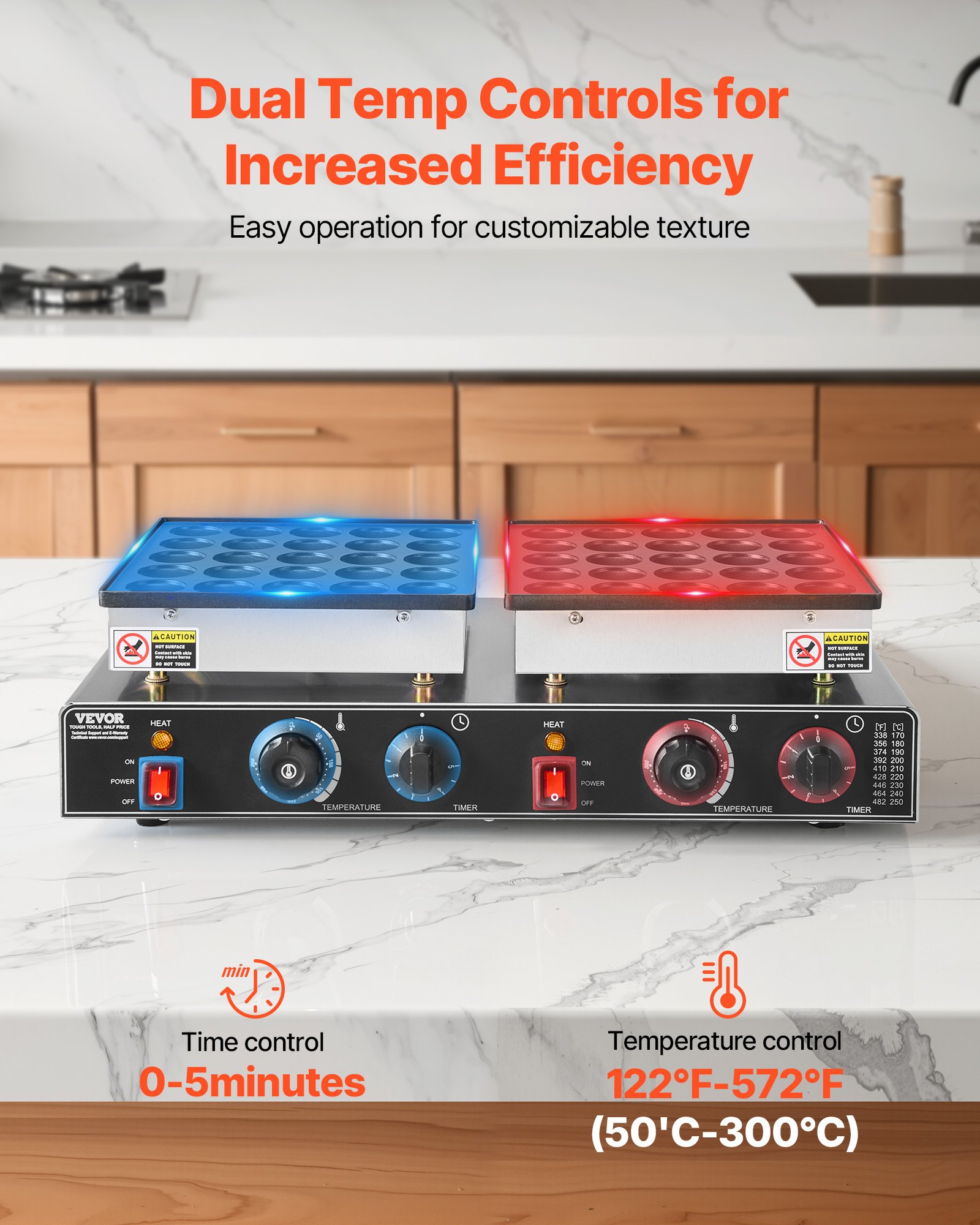 VEVOR Mini aparat za palačinke s 50 dijelova, Dorayaki pekar, Nehrđajući čelik s neprianjajućim slojem, Komercijalna električna tava za roštilj Poffertjes od 1800 W, Dvostruka kontrola temperature i vremena, za restorane