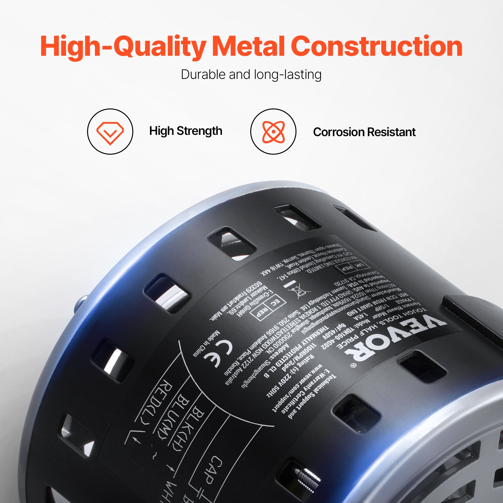 VEVOR motor puhala od 1/5 KS, 220 V, 1,45 A, 3 brzine (700/900/1100 o/min), promjer osovine 10 mm, valna duljina 20 mm, CRVENA. Okretanje ulijevo od kraja osovine, uklj. Kondenzator CBB60 8 μF / 450 V