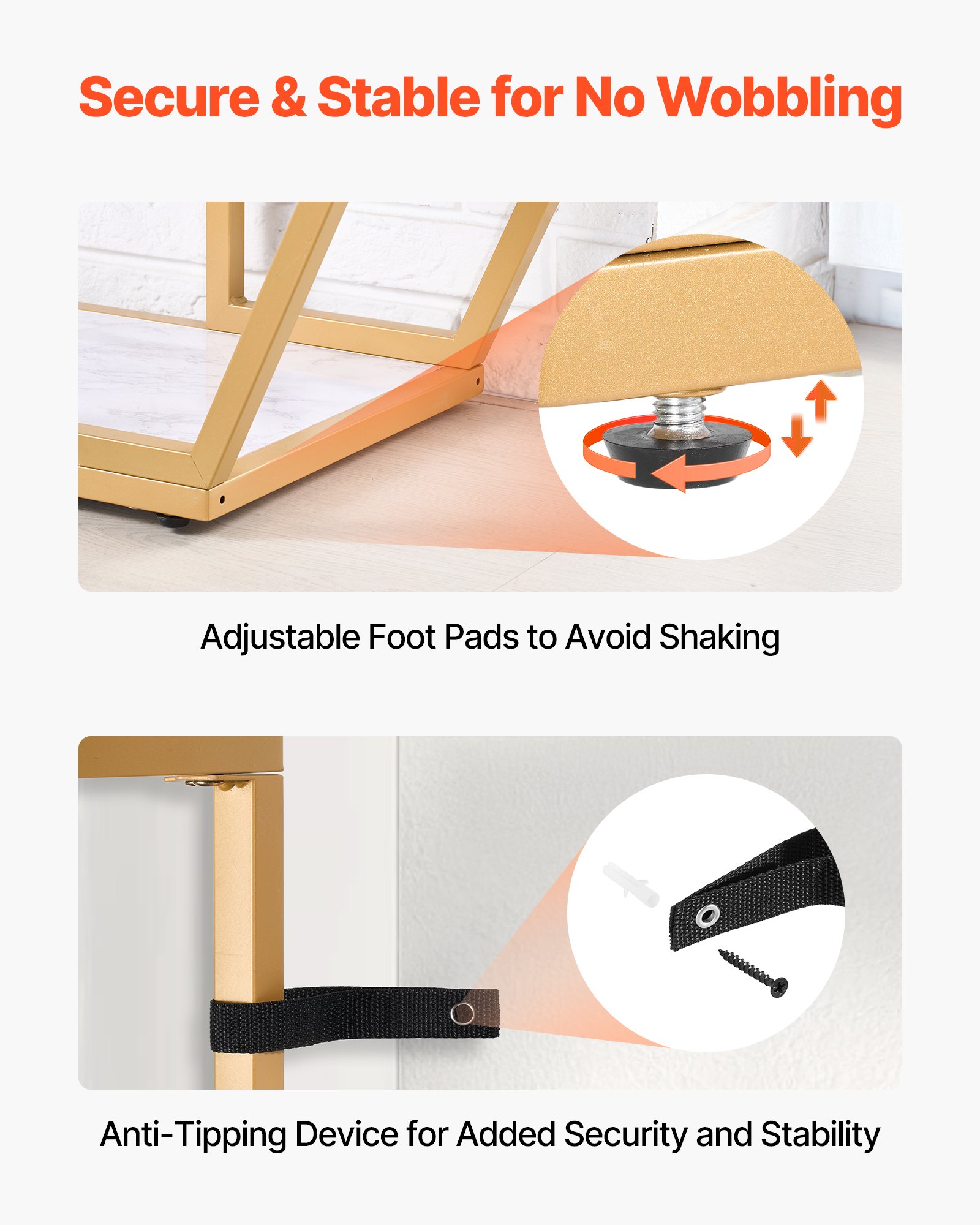 VEVOR mramorni konzolni stol, moderni troslojni stol za hodnik (180 x 35 x 91 cm) za otvorenu pohranu, zlatni geometrijski stol sa željeznim cijevima, otporan na prevrtanje i trokutasti oslonac