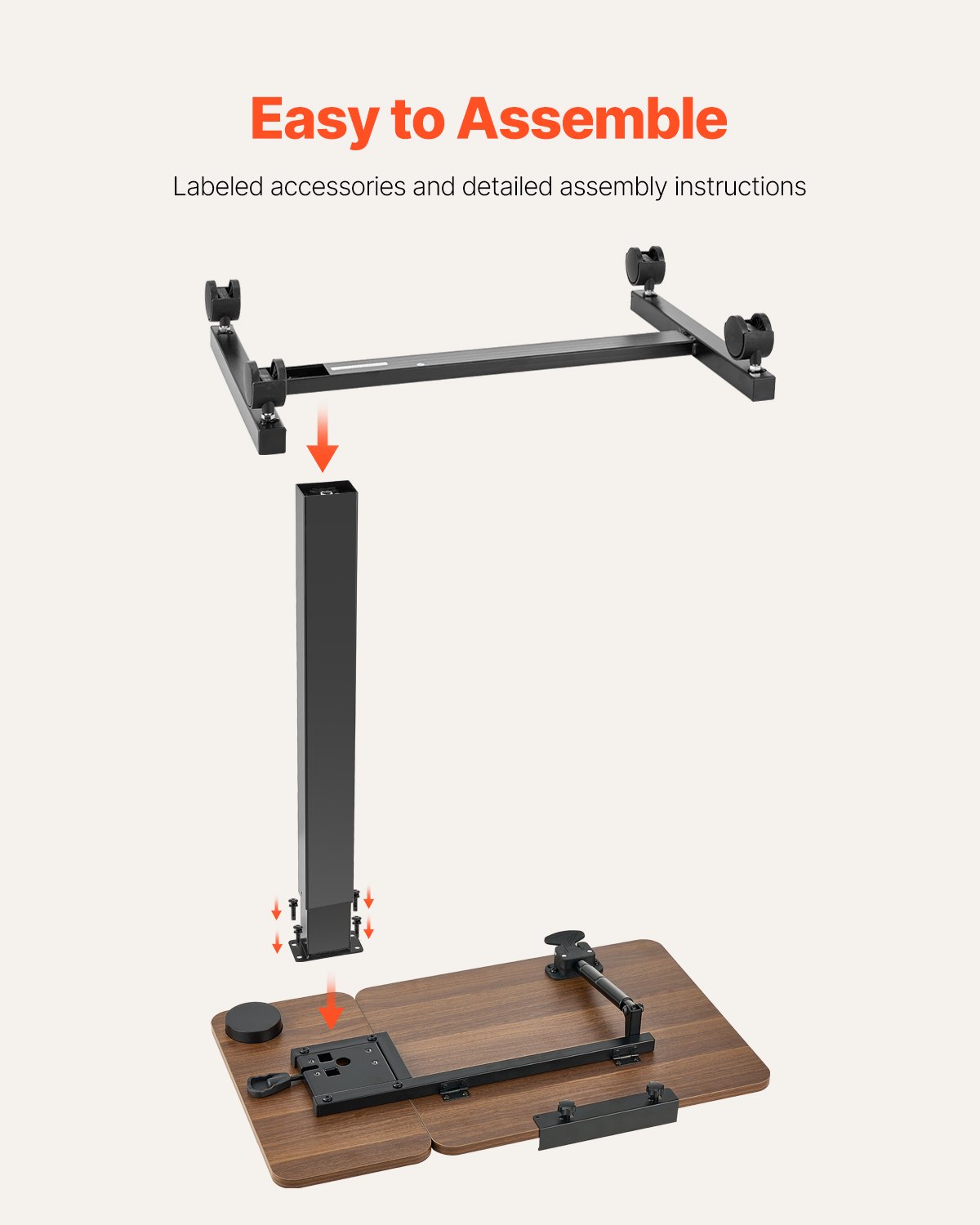 VEVOR Nadkrevetni stolić, Mobilni bočni stolić sa sklopivom radnom površinom, Stol za prijenosno računalo s podesivom visinom i kutom s držačem za čaše, Noćni stolić za ured/učionicu