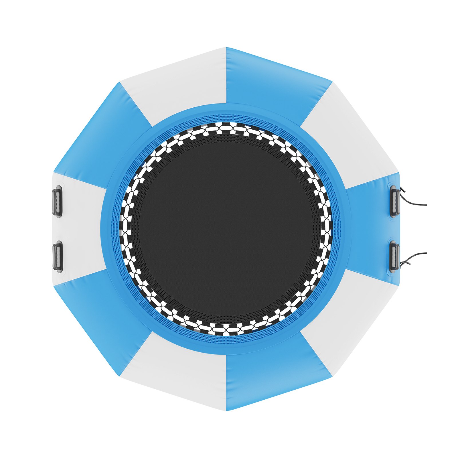 Napuhavanje vodenog trampolina s ljestvama, vodootporno, otporno na habanje, površina za skakanje 1,98 m, platforma za skakanje, trampolin za bazen u vodenom parku, plavo + bijelo, nosivost 185 kg
