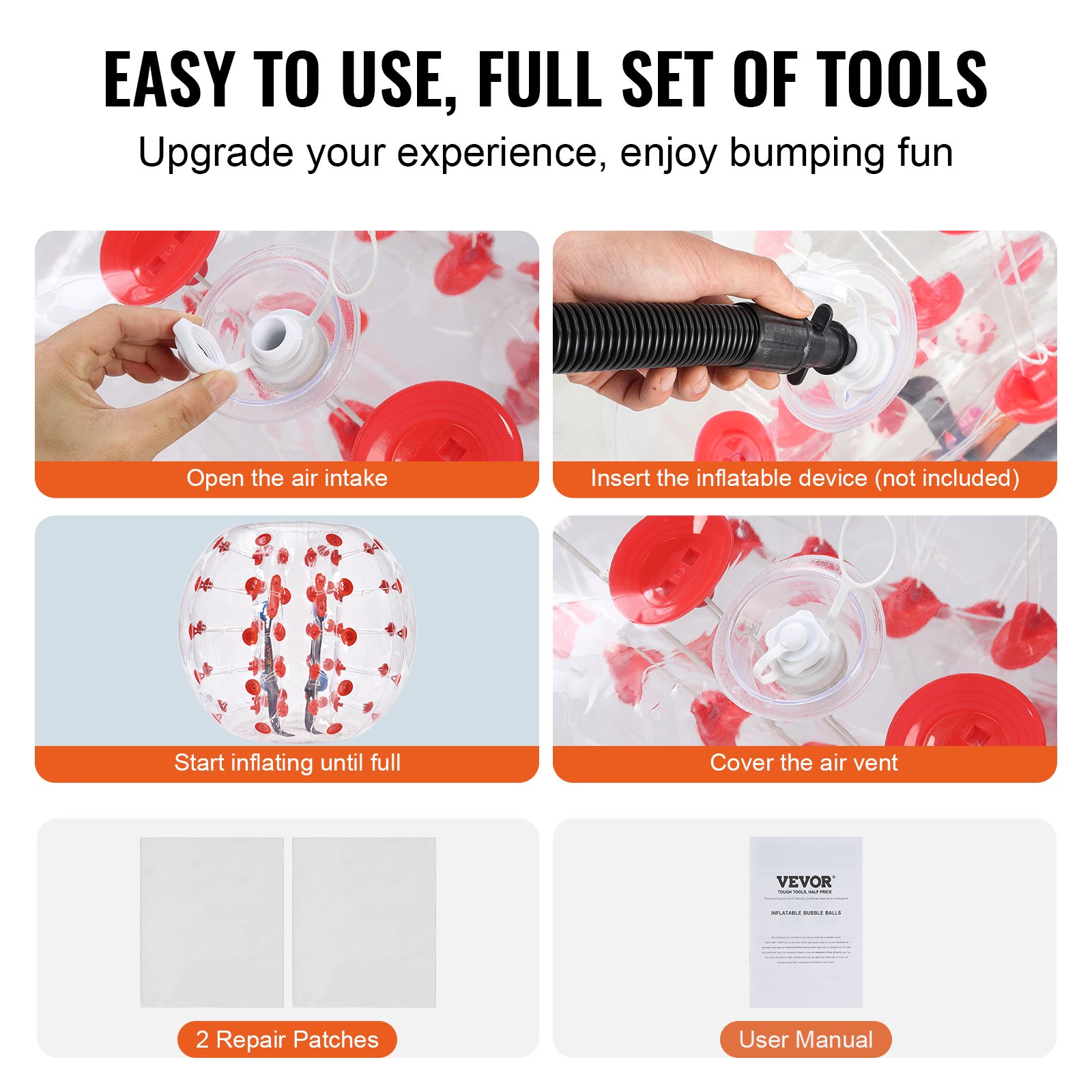 VEVOR Napuhavačka lopta za udarce, 1 kom. 1,2 m x 1,03 m, Lopta za sudar s ljudima, PVC lopta za odbijanje tijela s mjehurićima za aktivnosti na otvorenom, Prozirna + crvene točke Napuhavačka lopta za udarce