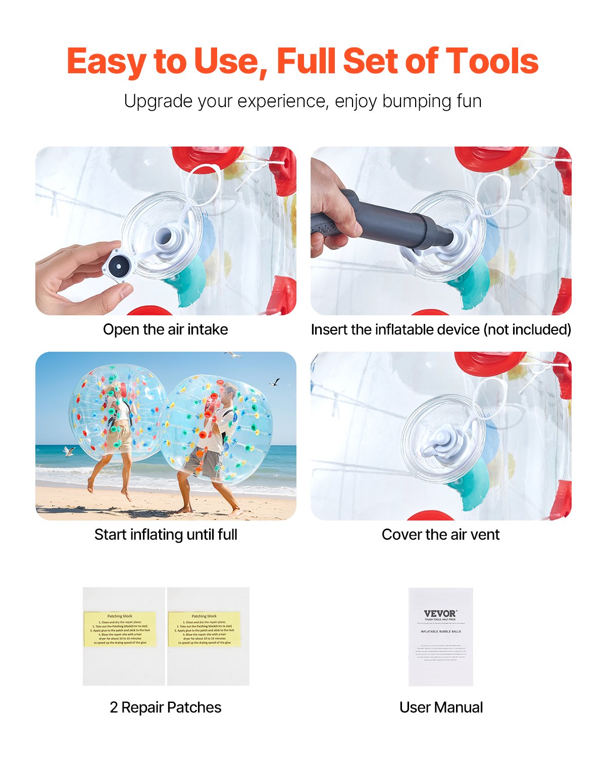 VEVOR Napuhavajuća lopta za udarce (1 kom.) 1,5 m, PVC lopta za udarce debljine 0,8 mm za vanjske sportske timske igre, vanjska igračka za vrt, dvorište, park, višebojna