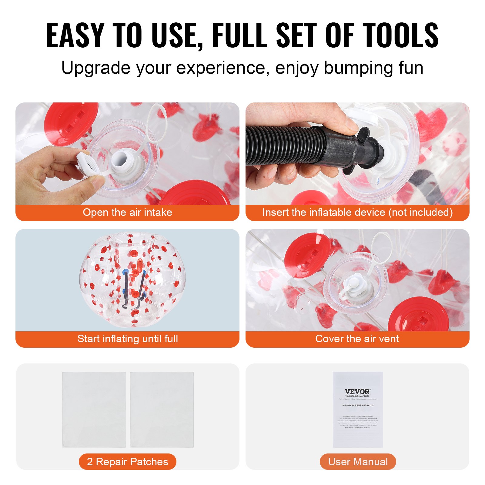 VEVOR Napuhavačka lopta za udarce, 1 kom. 1,5 m x 1,2 m, Lopta za sudar s ljudima, PVC lopta za odbijanje tijela s mjehurićima za aktivnosti na otvorenom, Prozirna + crvene točke Napuhavačka lopta za udarce