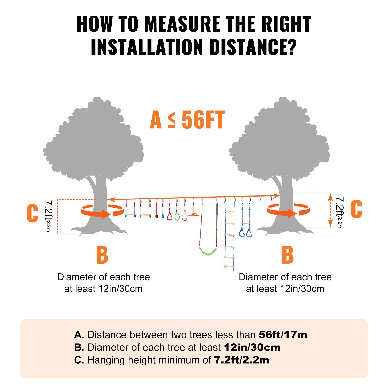 VEVOR Ninja set prepreka za slackline 2 x 17 m, nosivost 226,8 kg Ninja staza s preprekama, oprema za vanjsku igru, set opreme za vježbanje igračaka u dvorištu s 12 prepreka