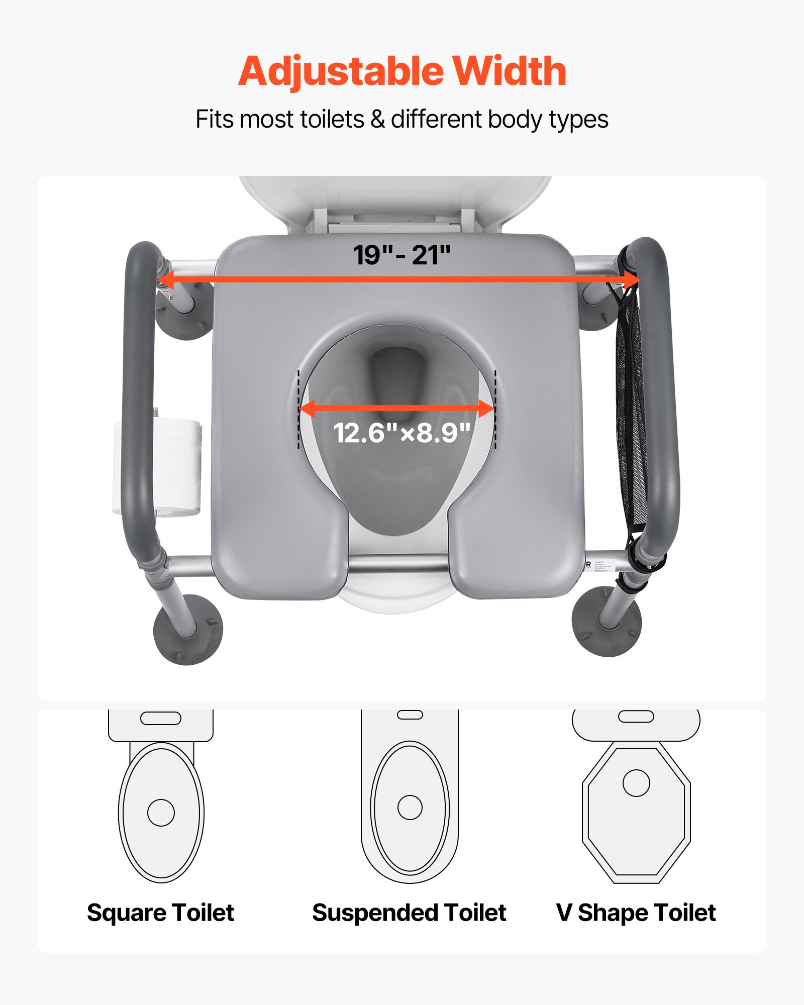 VEVOR noćna toaletna stolica, nosivost 227 kg, podizač za WC sjedalo s podstavljenim sjedalom i naslonom, uklonjiva kanta od 5 l, toaletna stolica s podesivom visinom za starije osobe i odrasle