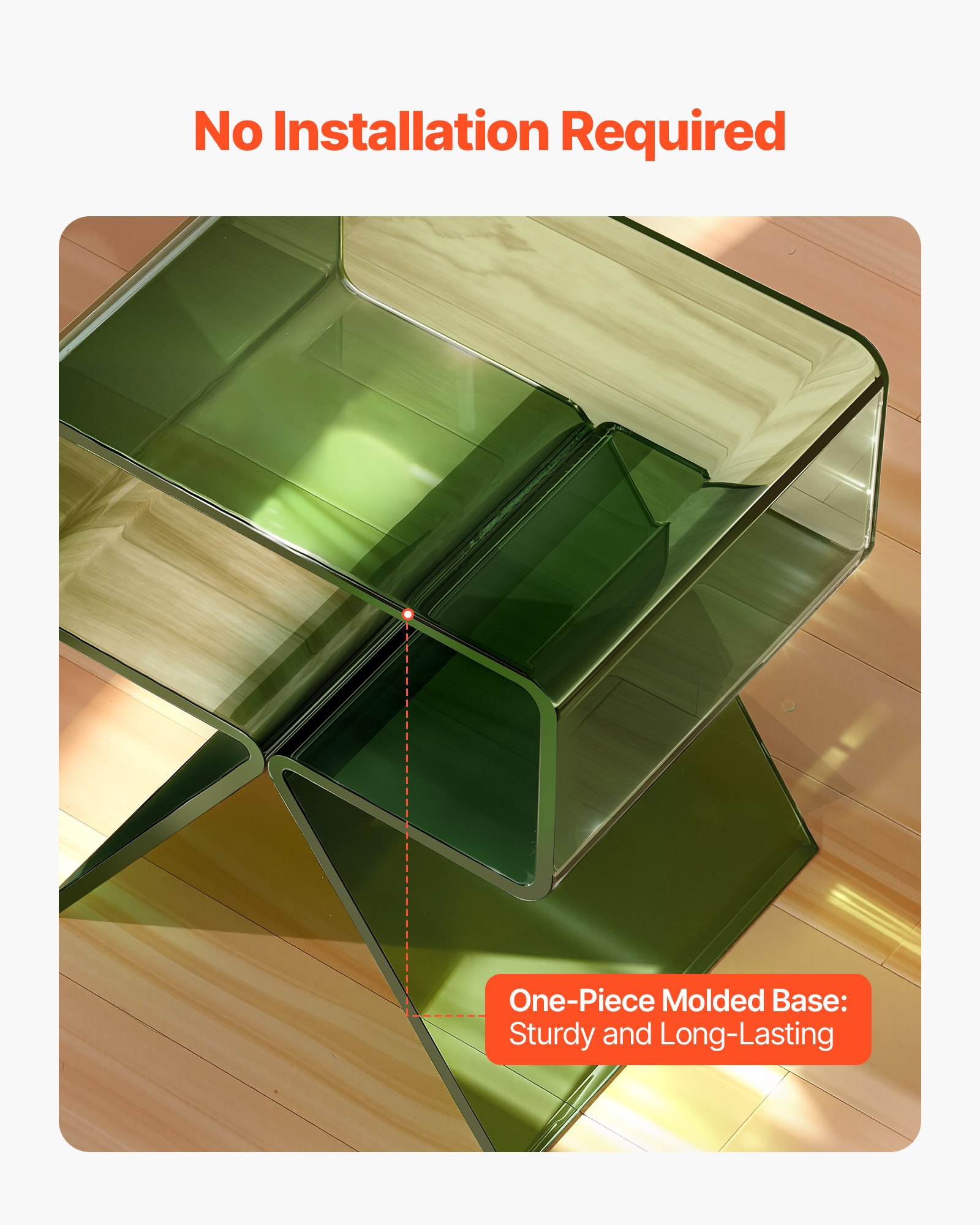 VEVOR noćni ormarić, bočni stolić, prozirni akril s policom, mali stolić za kavu za dnevni boravak, spavaću sobu, kućni dekor, 30 x 39,1 x 43 cm, moderni pravokutni stolić za kauč, zeleni akrilni stol