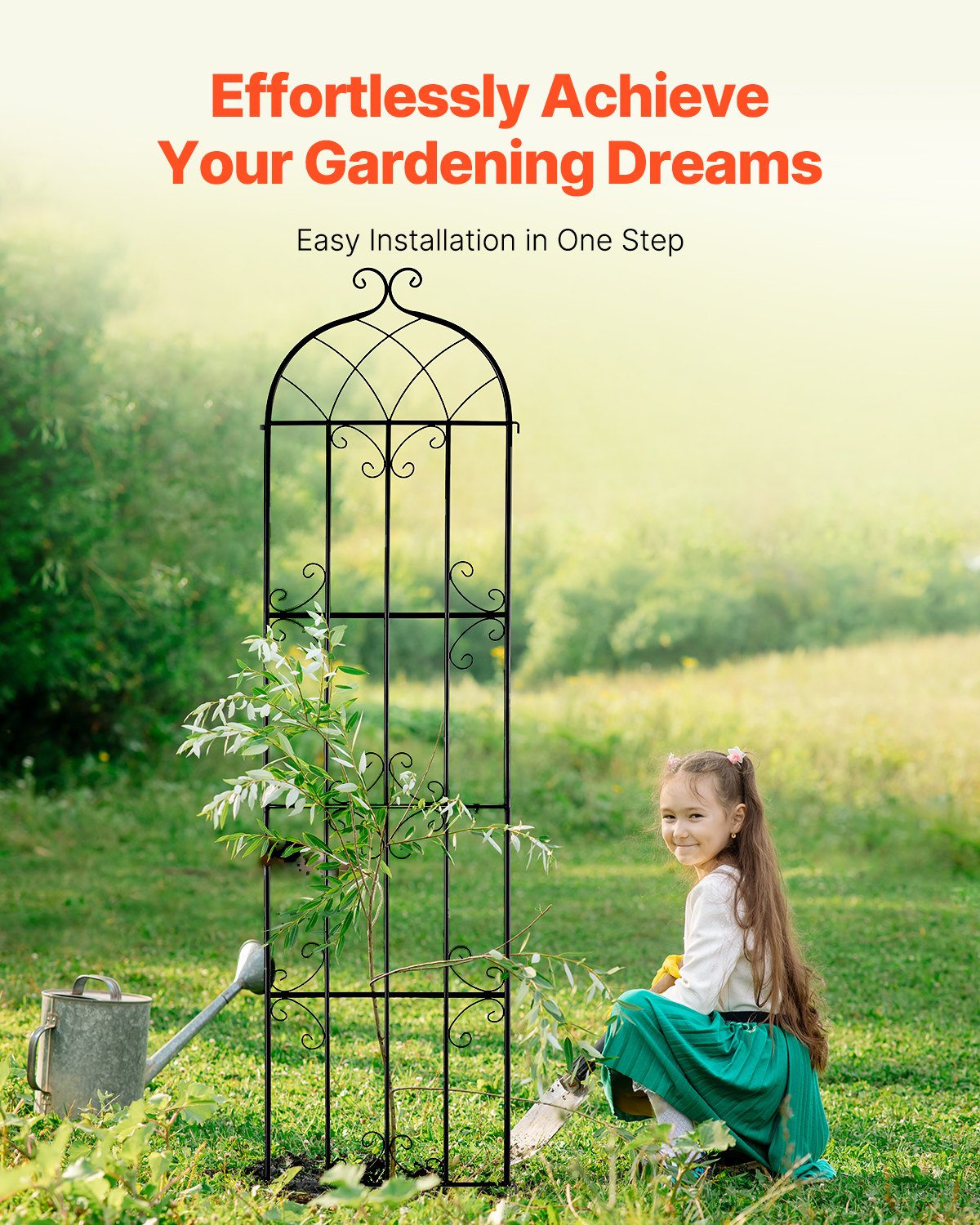VEVOR Nosač za penjačice, 51×220 cm, Set od 4, Metalna rešetka otporna na hrđu za vrtno cvijeće, Rešetka za ruže penjačice, Okvir za penjačicu, Nosač za krastavce, Ukrasna rešetka za klematis za dvorišta i dvorišta. Travnjak
