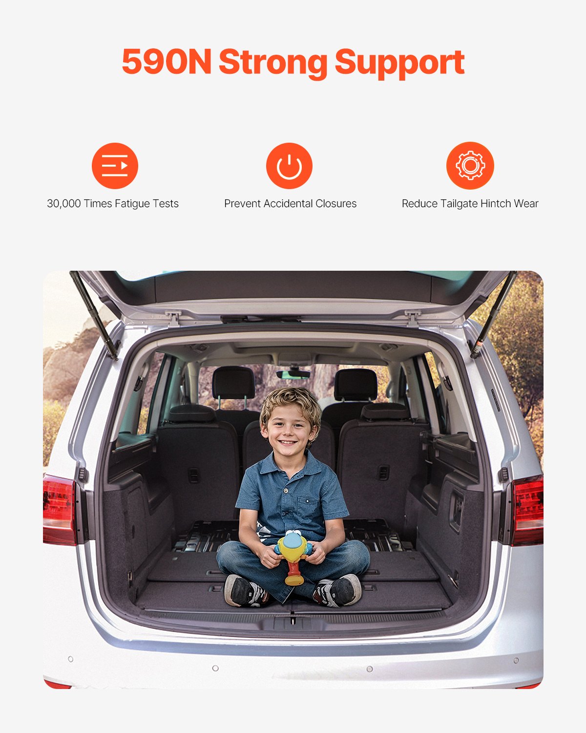 VEVOR Nosač za podizanje stražnjih vrata prtljažnika, lijevi i desni, kompatibilan s VW Sharan (7N, 7N1, 7N2) 2010–2023, električni amortizer za vrata prtljažnika, zamjenjuje OE broj 6891009130 6891009120 (2 kom.)