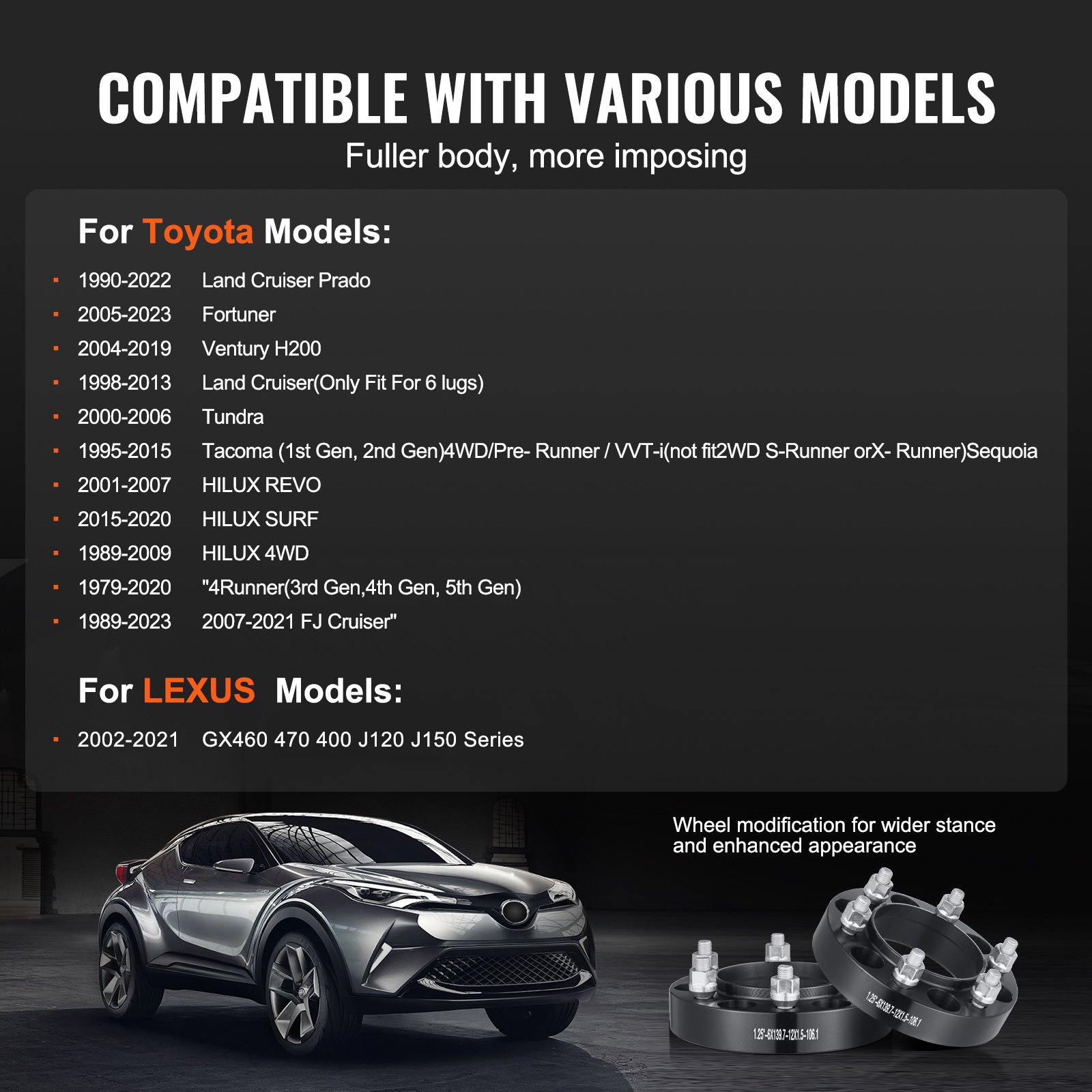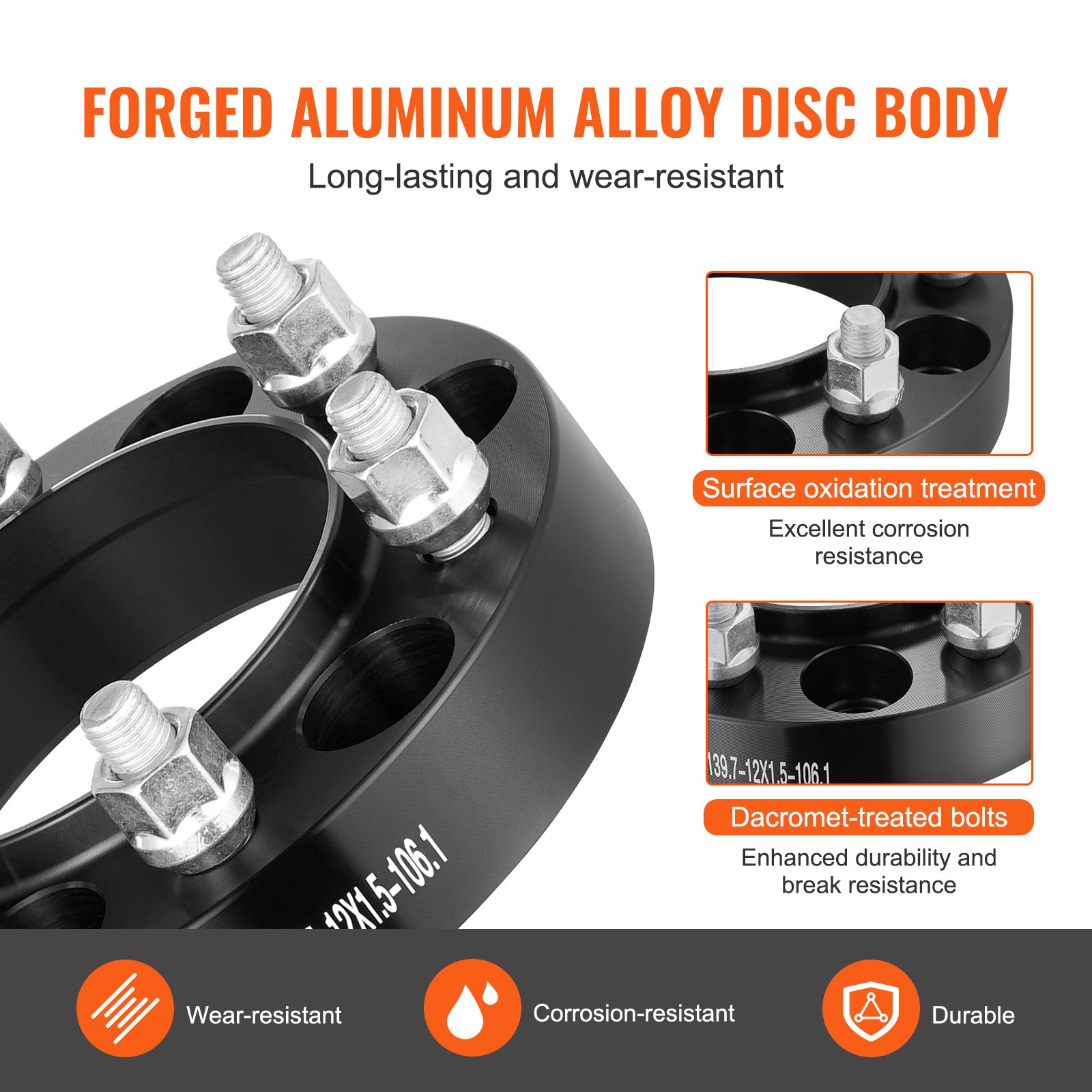 VEVOR odstojnici za kotače, adapteri za kotače 1,25 inča 6 x 5 inča, 6 vijaka za kotače, kovani, provrt 106,1 mm, vijci M12 x 1,5 centrirani u glavčini, odstojnici, odgovaraju Toyoti i Lexusu 1979.–2023.
