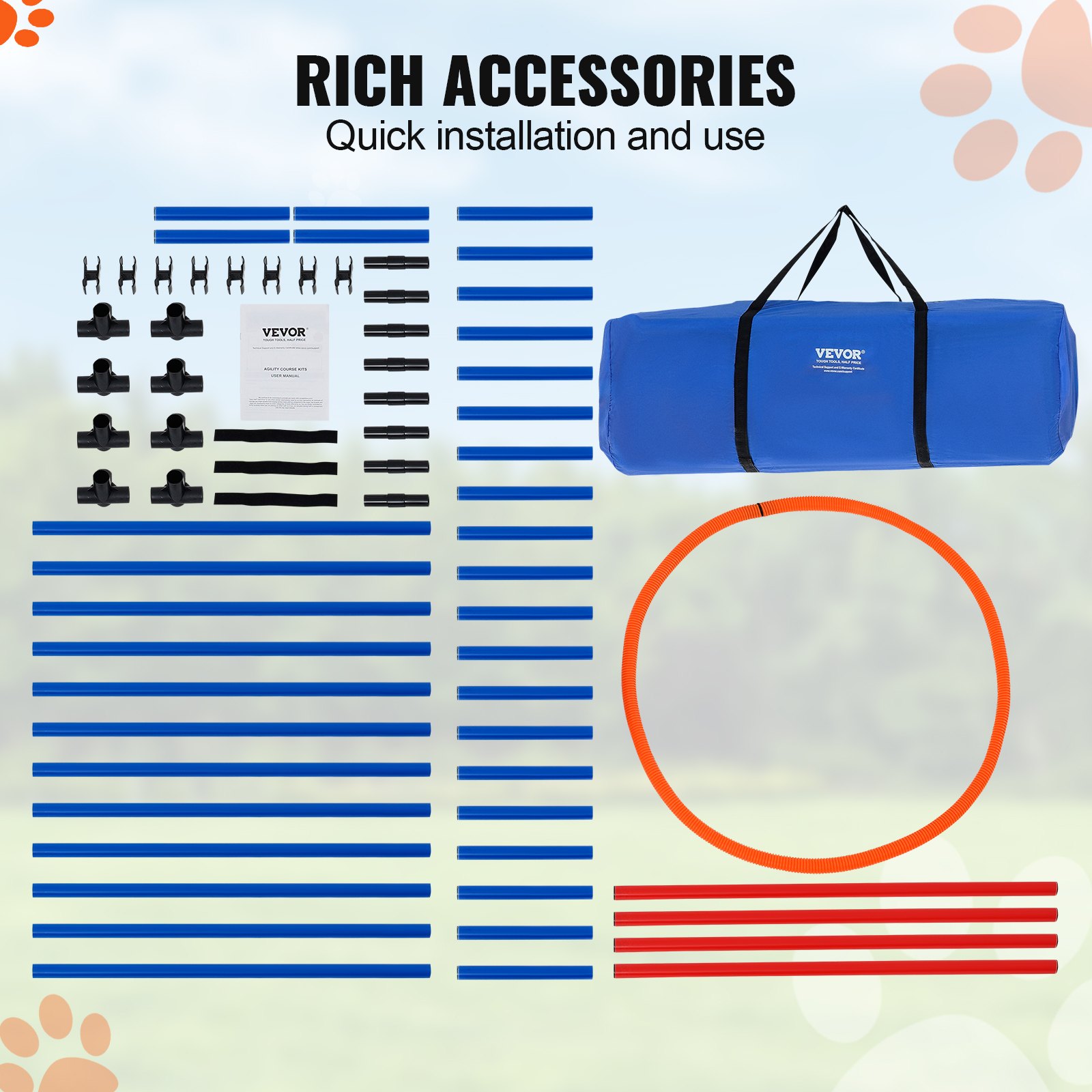 VEVOR Oprema za trening agilnosti za pse, set od 4 dijela – podesive visoke prepone i obruč za preskakanje, početni set za stazu s preprekama za štence s torbom za pohranu šipke za dvorište, unutarnju i vanjsku upotrebu