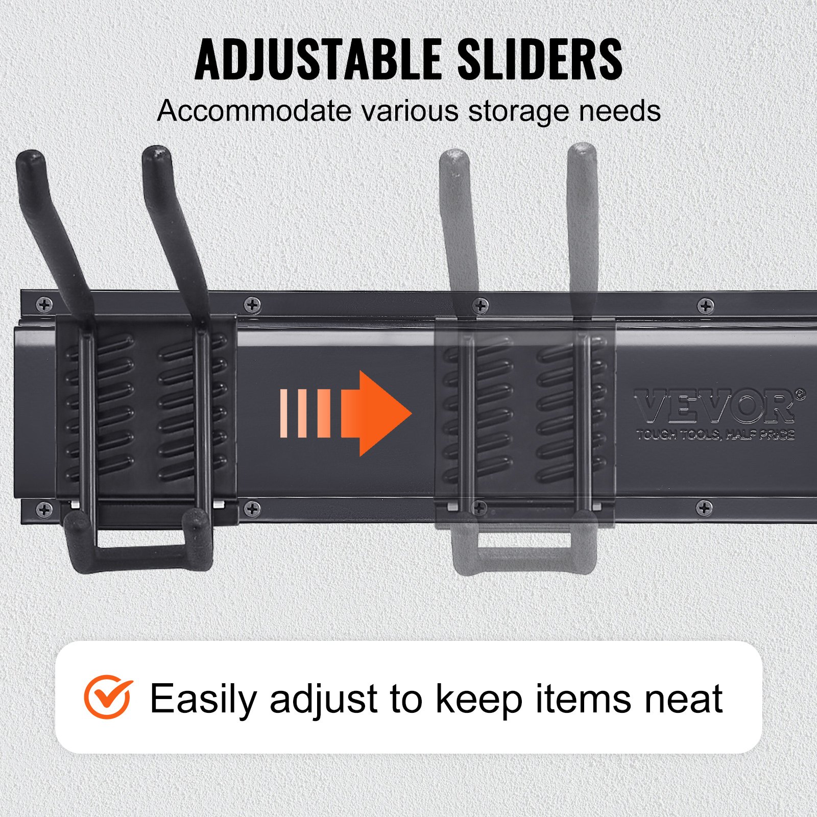 VEVOR Organizator za alat za garažu, Maksimalna nosivost 362,9 kg, Zidni stalak za dvorište, vrt, organizacija, teški uvjeti rada, sa 6 podesivih kuka i 3 šine, za vrtni alat