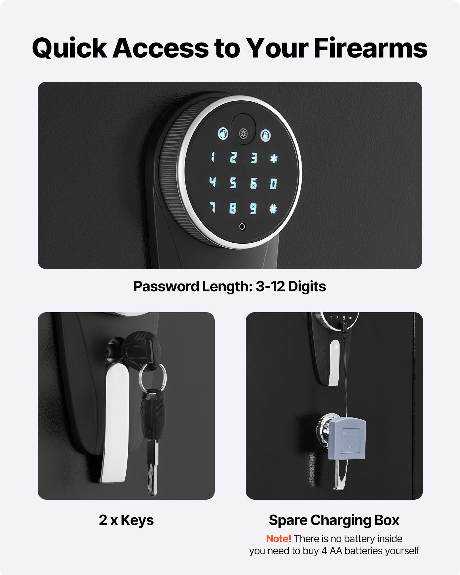 VEVOR ormar za puške, ormar za dugačke puške i pištolje, sef za oružje s 2 odjeljka za streljivo i 2 podesive police, veliki ormar za oružje s ključem i… Zaključavanje lozinkom