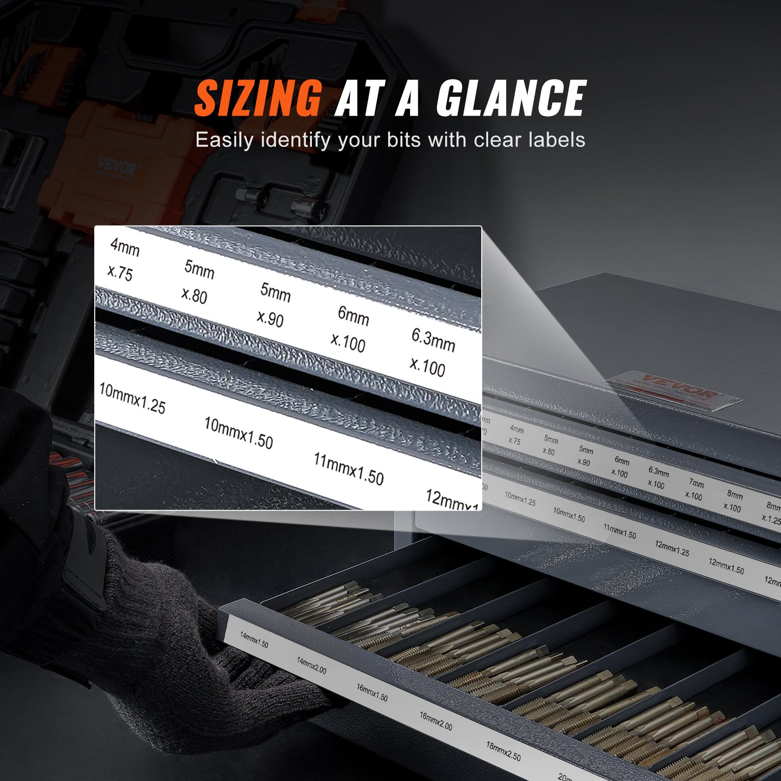VEVOR Ormarić za doziranje svrdala za rezanje, Organizator svrdala za rezanje s tri ladice za čelične dozatore od 3 mm do 24 mm s naljepnicama, Ormarić za slaganje s 29 odjeljaka za pohranu svrdala za rezanje itd.