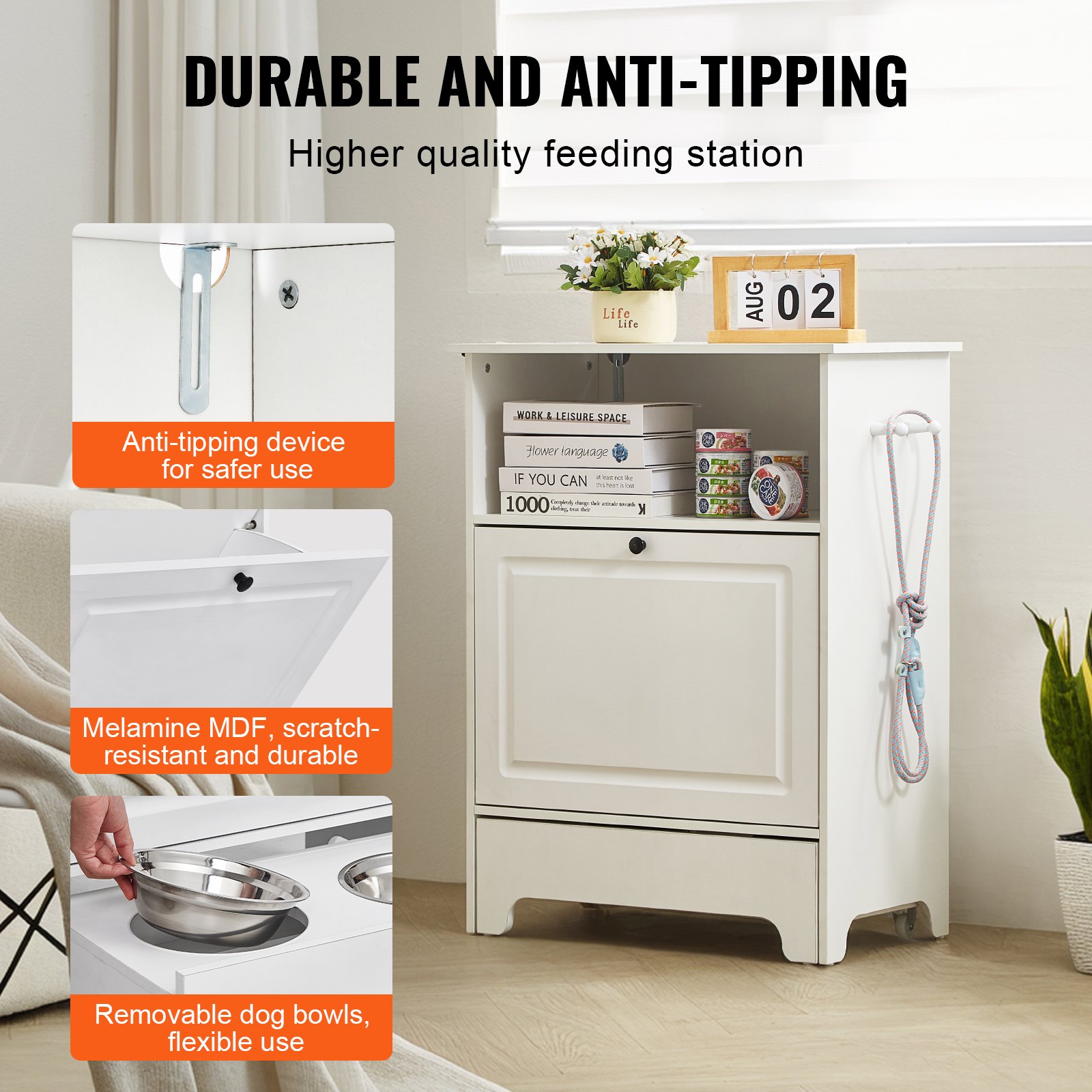VEVOR Ormarić za hranjenje pasa s 2 zdjelice od nehrđajućeg čelika 60 x 35 x 80 cm, Povišene zdjelice za pse s prostorom za pohranu, Ormarić za hranu za kućne ljubimce, Zdjelica za hranjenje, Zdjelica za hranu, Stalak za zdjelice za pse, Prečka za zdjelice, Prečka za pse za male pse