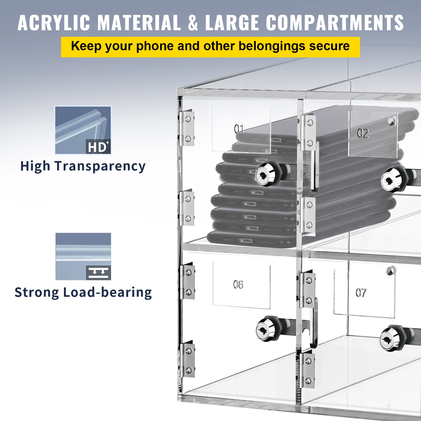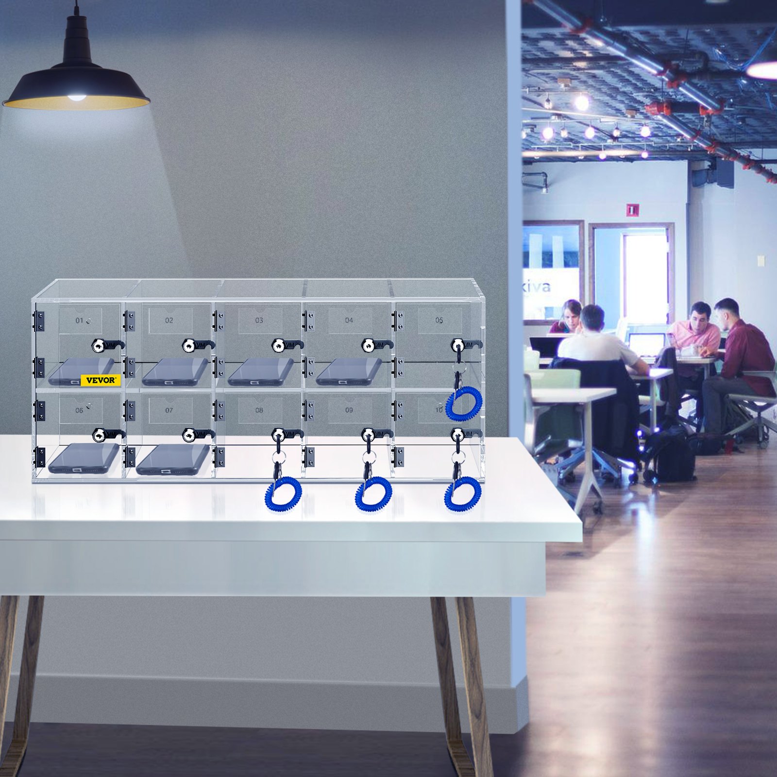 VEVOR Ormarić za pohranu mobitela, 10 odjeljaka izrađenih od akrilnog materijala s bravama na vratima i ključevima, zidni ormarić, džepni uredski ormarić, učionica, teretana, kutija, prozirni