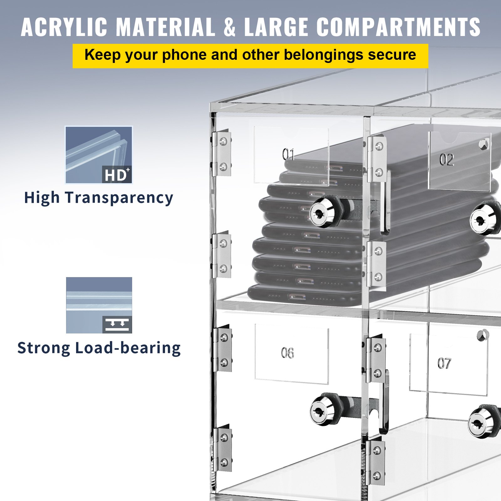 VEVOR Ormarić za pohranu mobitela, 20 pretinaca izrađenih od akrilnog materijala s bravama na vratima i ključevima, zidni ormarić, džepni uredski ormarić, učionica, teretana, kutija, prozirni