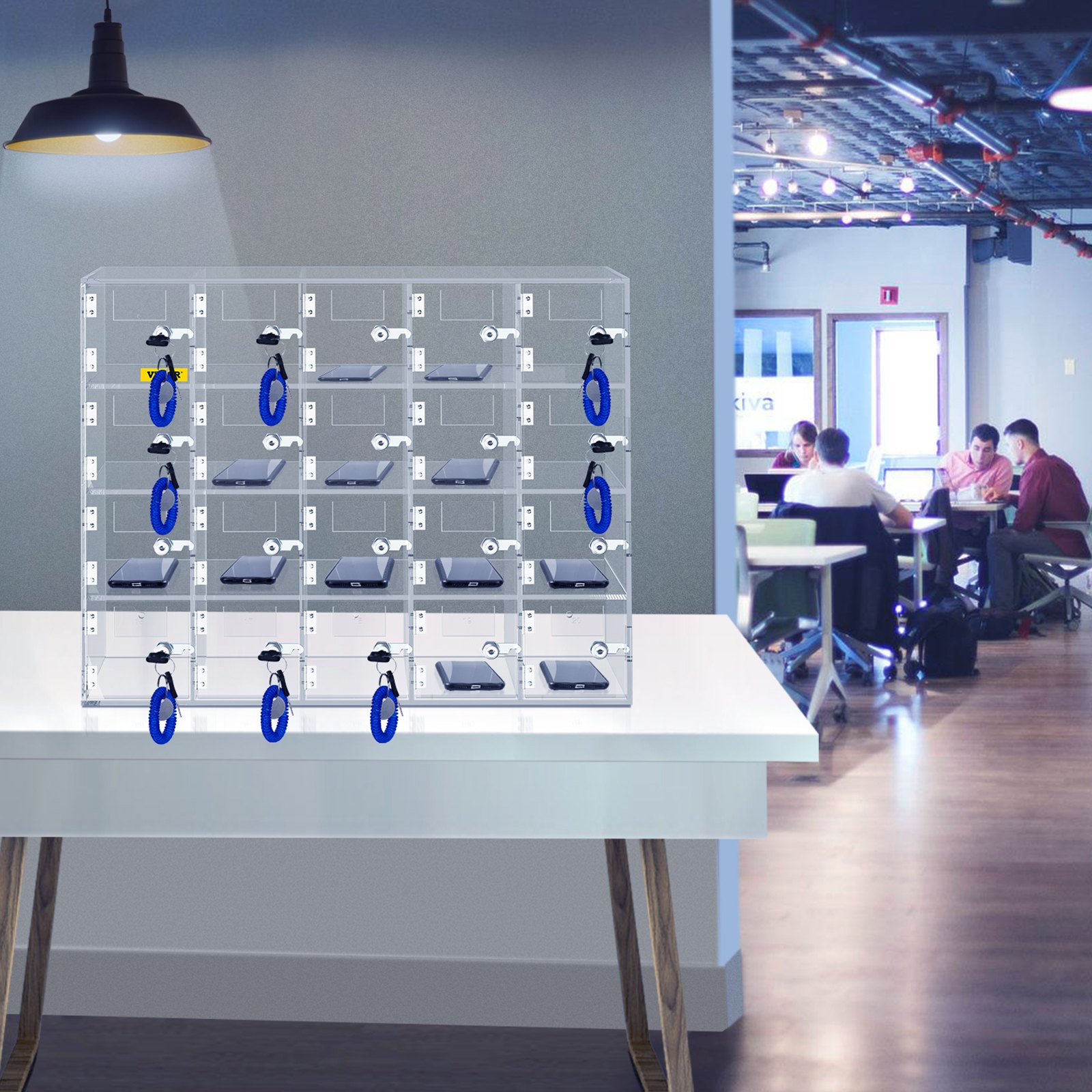 Ormarić za pohranu mobitela, 20 pretinaca izrađenih od akrilnog materijala s bravama i ključevima, zidni ormarić, džepni ured, učionica, teretana, kutija, prozirni