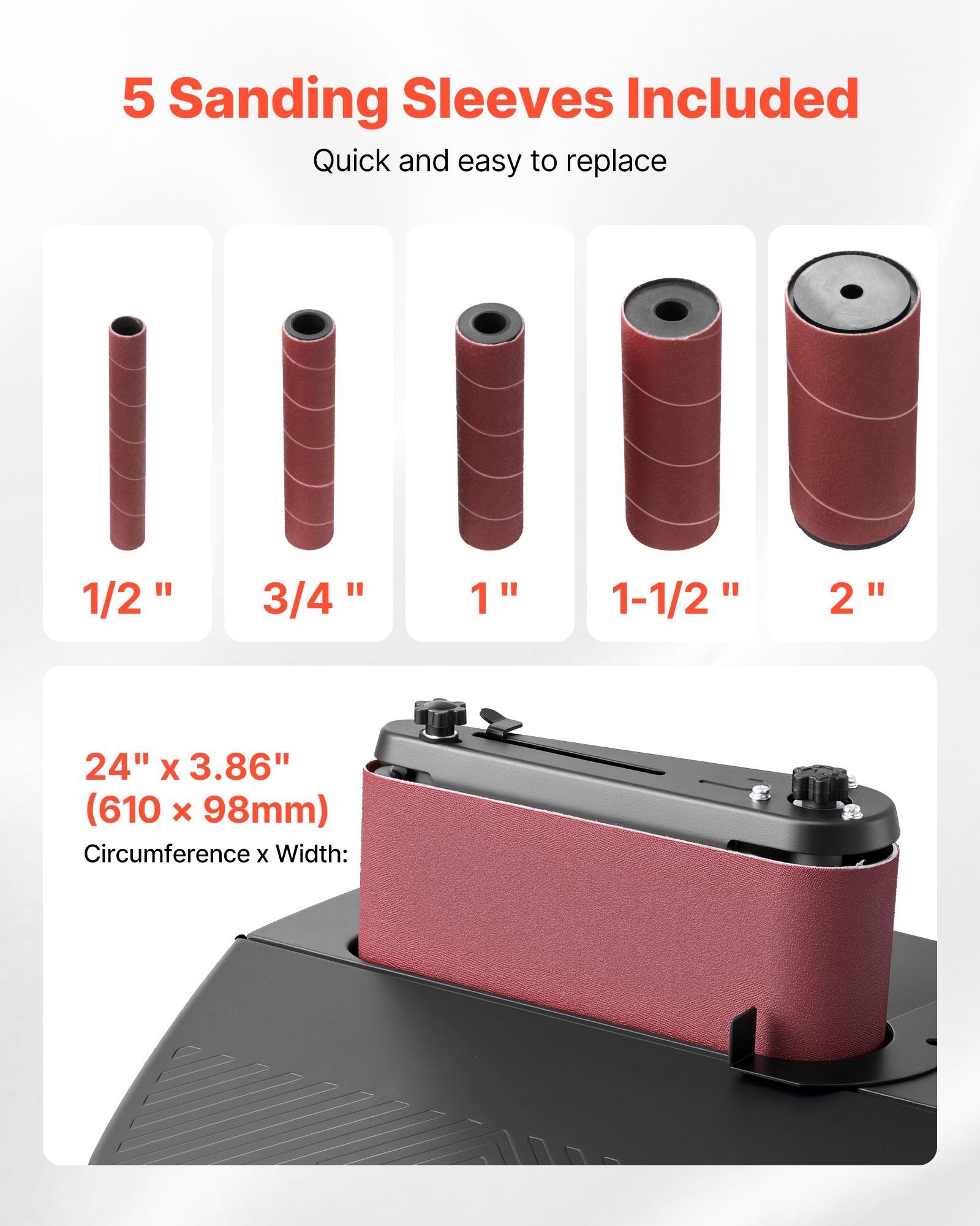 VEVOR Oscilacijska brusilica s vretenom, brusilica s vretenom od 2000 o/min s hodom od 16 mm, 5 čahura (12,7–50,8 mm) i Brusna traka 610×98 mm za obradu drveta, brušenje namještaja, DIY projekte