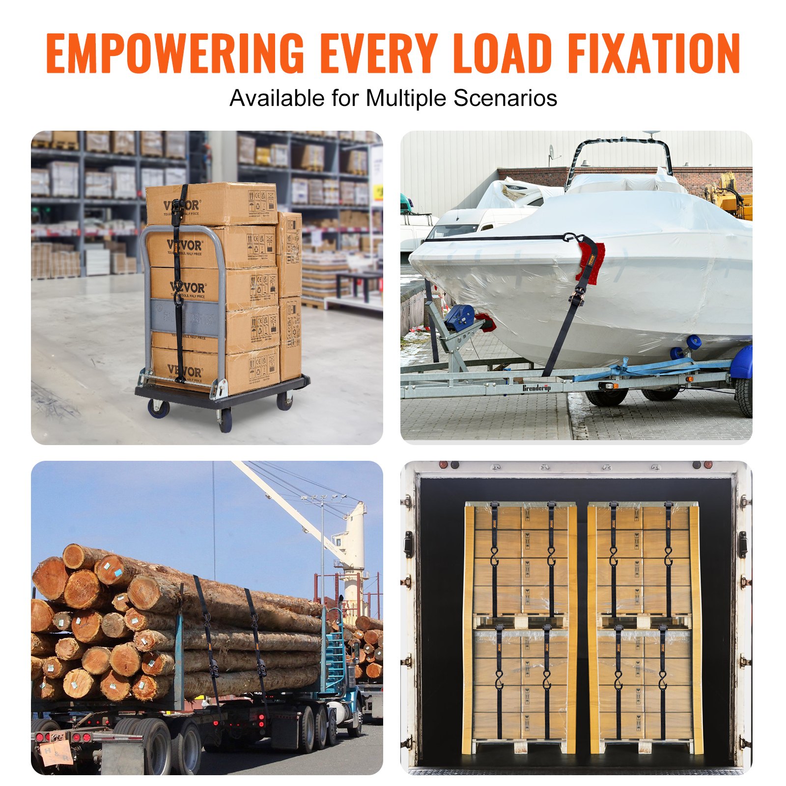 VEVOR Paket od 4 trake za vezivanje s račvom 0,025 x 4,6 m Trake za vezivanje 998 kg Trake za vezivanje s račvom Poliesterska traka Kuke od ugljičnog čelika Remen za pričvršćivanje Traka za vezivanje s račvom Idealno za motocikle Bicikle Kajake UTV-e Čamce ATV-e