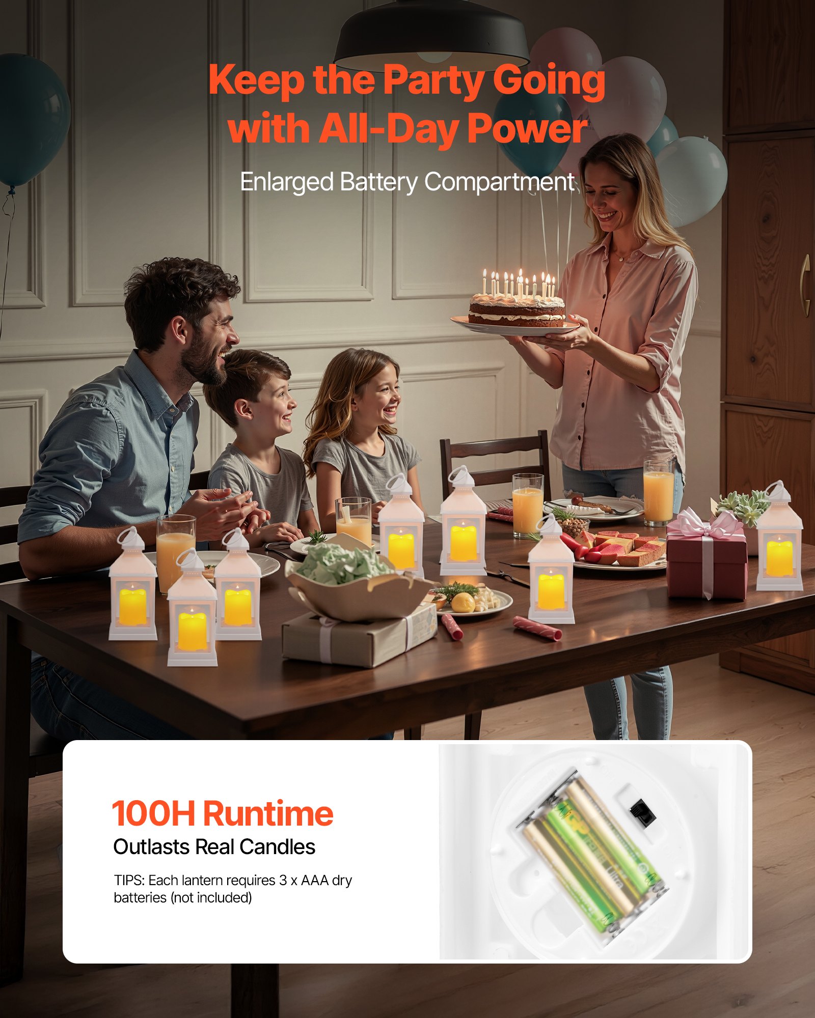 VEVOR Pakiranje od 12 ukrasnih lampiona za svijeće, električne LED svijeće bez plamena, plastični držači sa staklom, zidni ukras za trijem, vjenčane stolove, zabave, seoske kuće, bijela, 105x105x240 mm