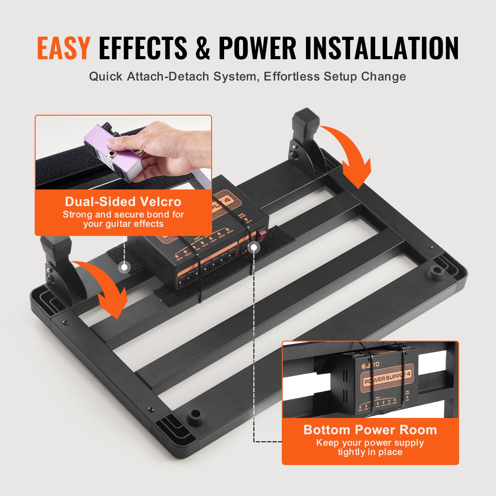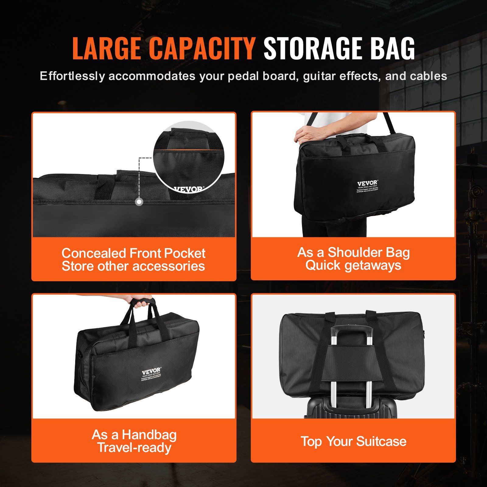 VEVOR gitarska pedalboard ploča 508 x 280 mm aluminijska legura 1,2 kg super lagana sklopiva gitarska pedalboard s torbom za nošenje, čičak trakom za 10-12 gitarskih pedala