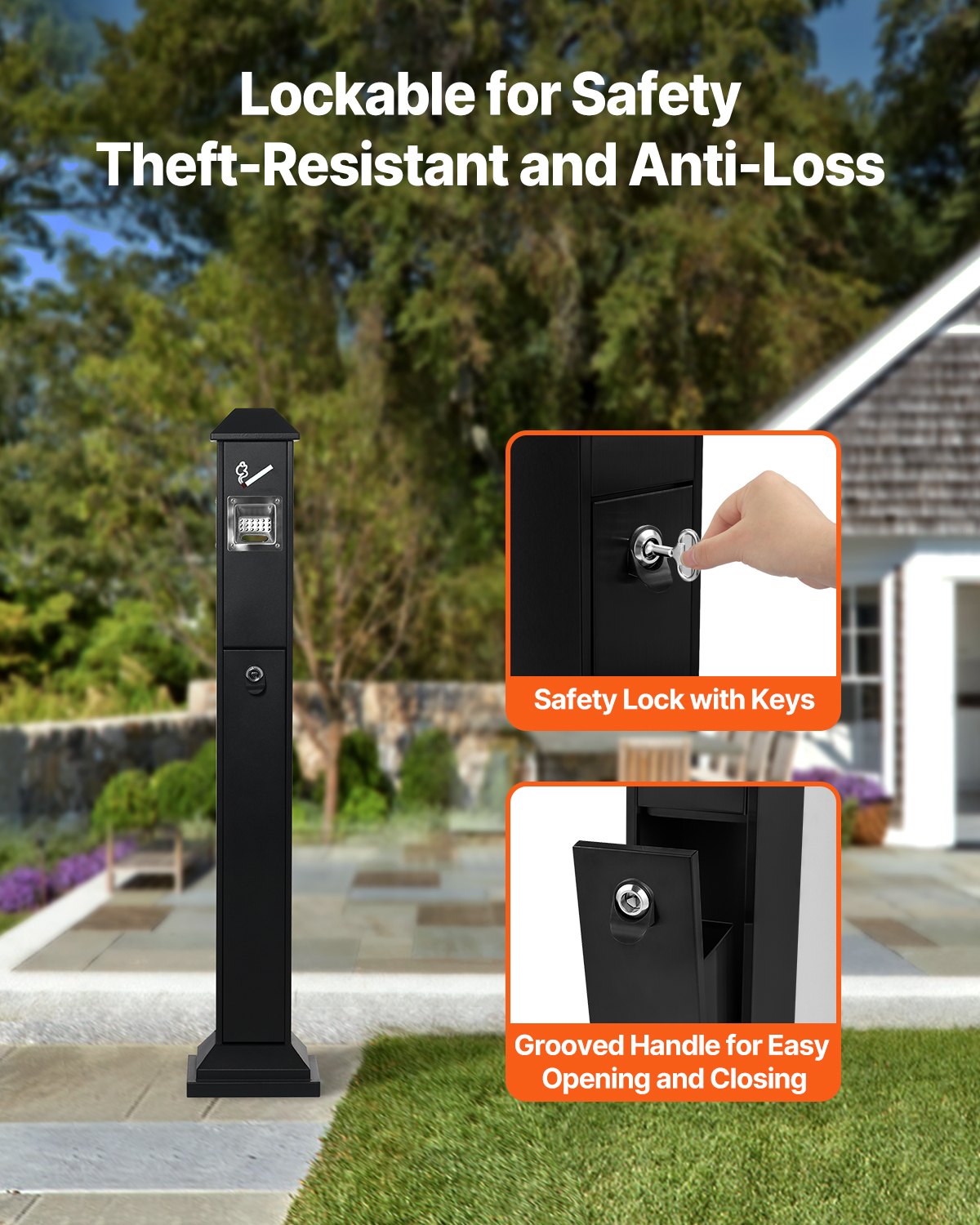 VEVOR pepeljara za cigarete, kvadratna posuda za opuške s 4 otvora za odlaganje i gornjim poklopcem, ploče pepeljare od pocinčanog čelika za vanjsku upotrebu Vrt, ured, restoran, hotel