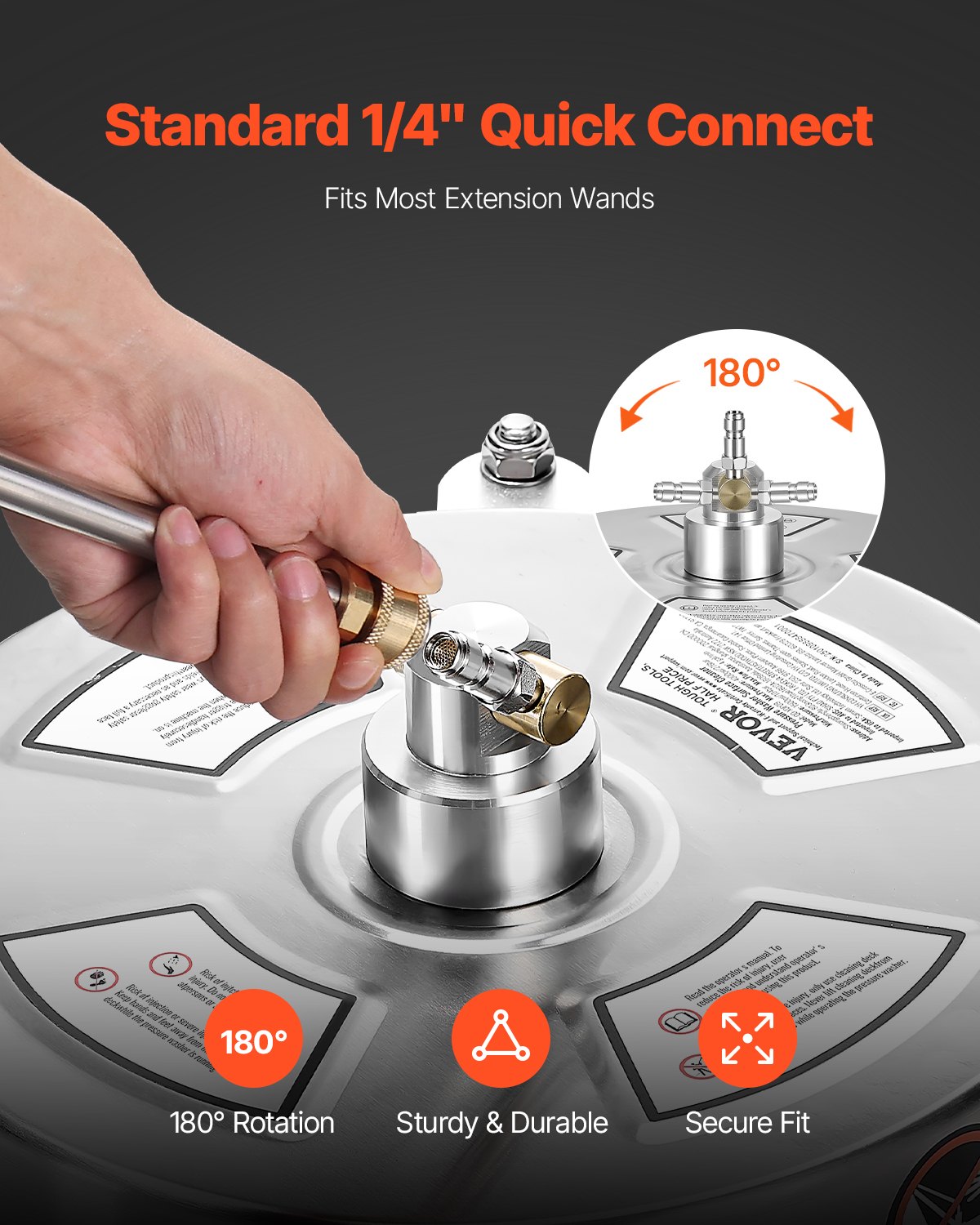 VEVOR 325 mm visokotlačni perač, čistač površina, čistač površina od nehrđajućeg čelika s 4 kotača, maks. 4000 PSI, 6,35 mm brzi priključak, 2 mlaznice za prskanje, 2 produžena štapa za beton, terasu, palubu