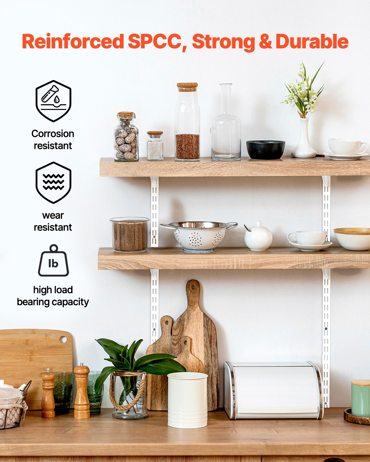 VEVOR Stupci za police, 1536 mm, Pakiranje od 5 komada, Uspravni zidni sustav polica, Sustav potpore s dvostrukim utorima za teške uvjete rada, 25 vijaka, Pogodno za organizaciju ormara i ormara, Srebrna