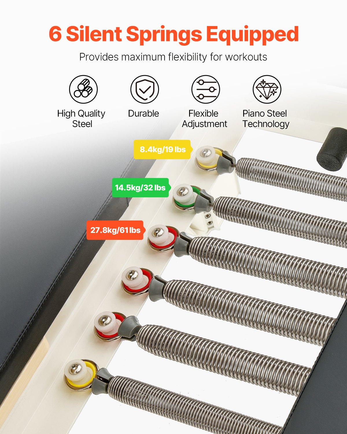 VEVOR Pilates Reformer sprava, aluminijski pilates krevet sa sjedalom i dvostrukim otporom – opruga i uže, za napredne i početnike, oprema za kućnu teretanu do 181,44 kg (400 lbs)