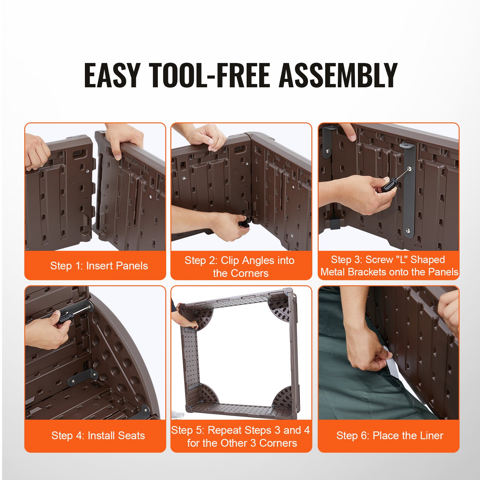 VEVOR Pješčanik s pokrovom, kvadratni pješčanik, HDPE pješčanik s 4 kutna sjedala i donjom oblogom, dječji pješčanik, poklon za dječake i djevojčice u dobi od 3 do 12 godina, smeđi