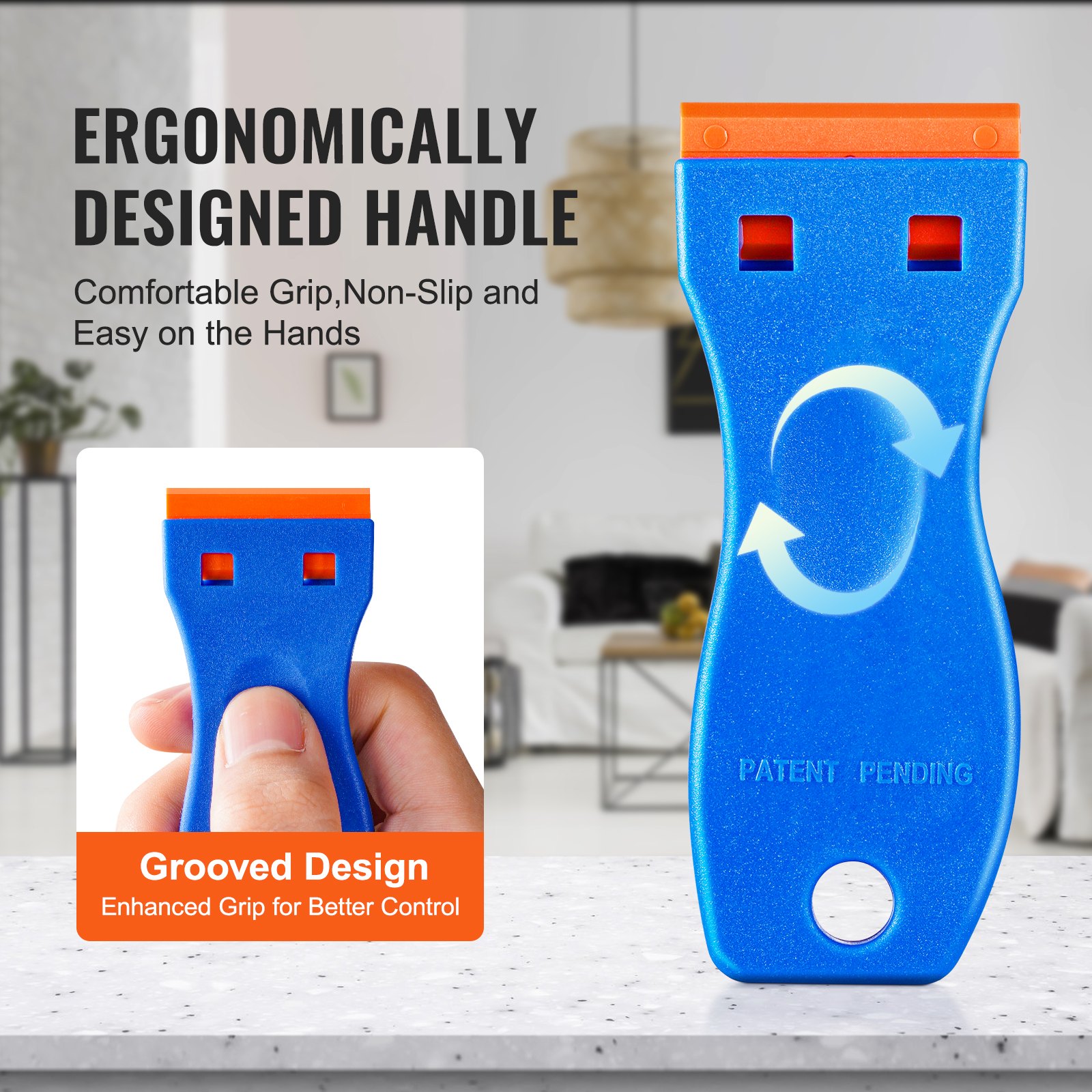 VEVOR Plastični strugač za britvice, Alat za struganje od 2 dijela, 120 plastičnih oštrica, Strugač za čišćenje i uklanjanje naljepnica, ljepila, etiketa, boje sa stakla, automobila, prozora, brtvila, bez ogrebotina, Plavi
