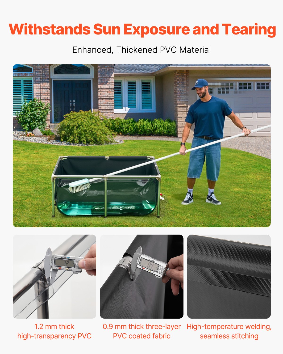 VEVOR platneni ribnjak, akvarij od 480 l, PVC akvarij za koi šarane s prozirnim prozorčićem za gledanje, akvarij za zlatne ribice s okvirom od nehrđajućeg čelika i ispusnim ventilom, za uzgoj koi šarana i zlatnih ribica (crni)