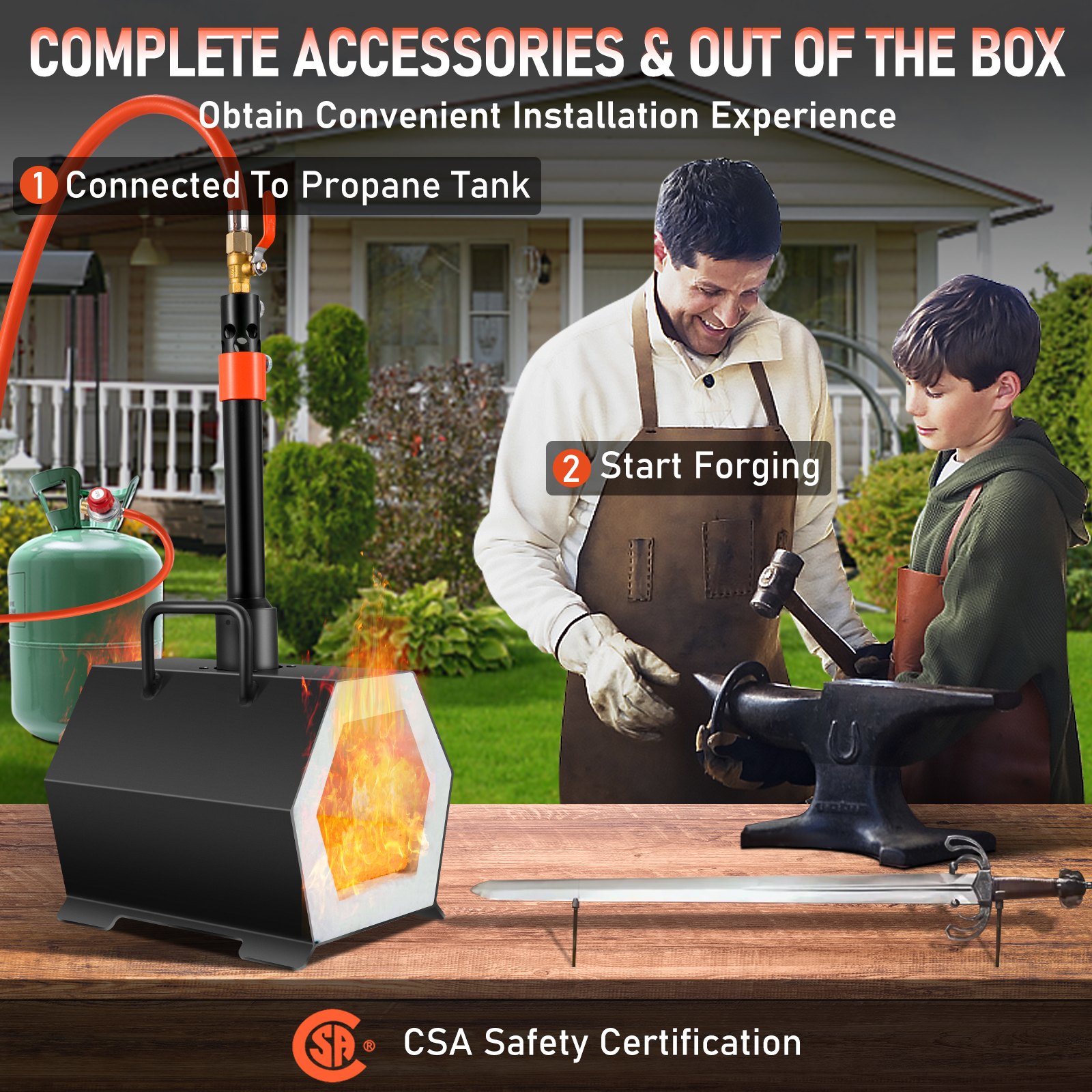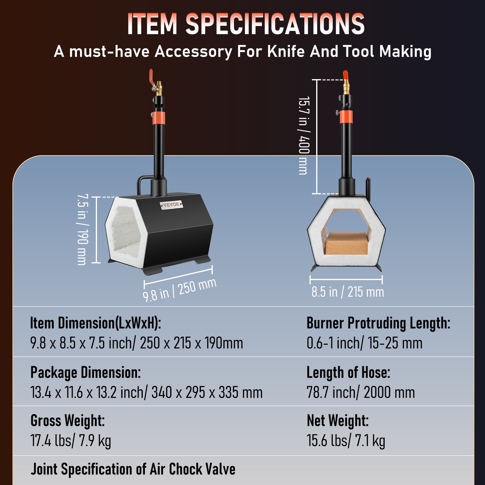 VEVOR plinska kovačka peć, šesterokutna, 250 x 215 x 190 mm plinska kovačnica s plamenikom, zlato, mesing, bronca, magnezij, aluminij, kositar i nehrđajući čelik, plinska propanska kovačka peć, plinsko crijevo od 2 m