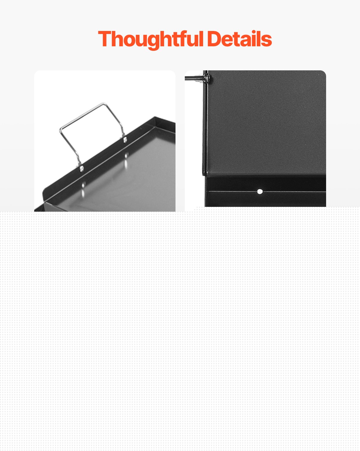 VEVOR ploča za roštilj, univerzalna pravokutna ploča od ugljičnog čelika (606 x 360 mm) s ravnim vrhom, ploča za roštilj na plin za roštilj, teppanyaki, prijenosno obiteljsko posuđe s ručkom
