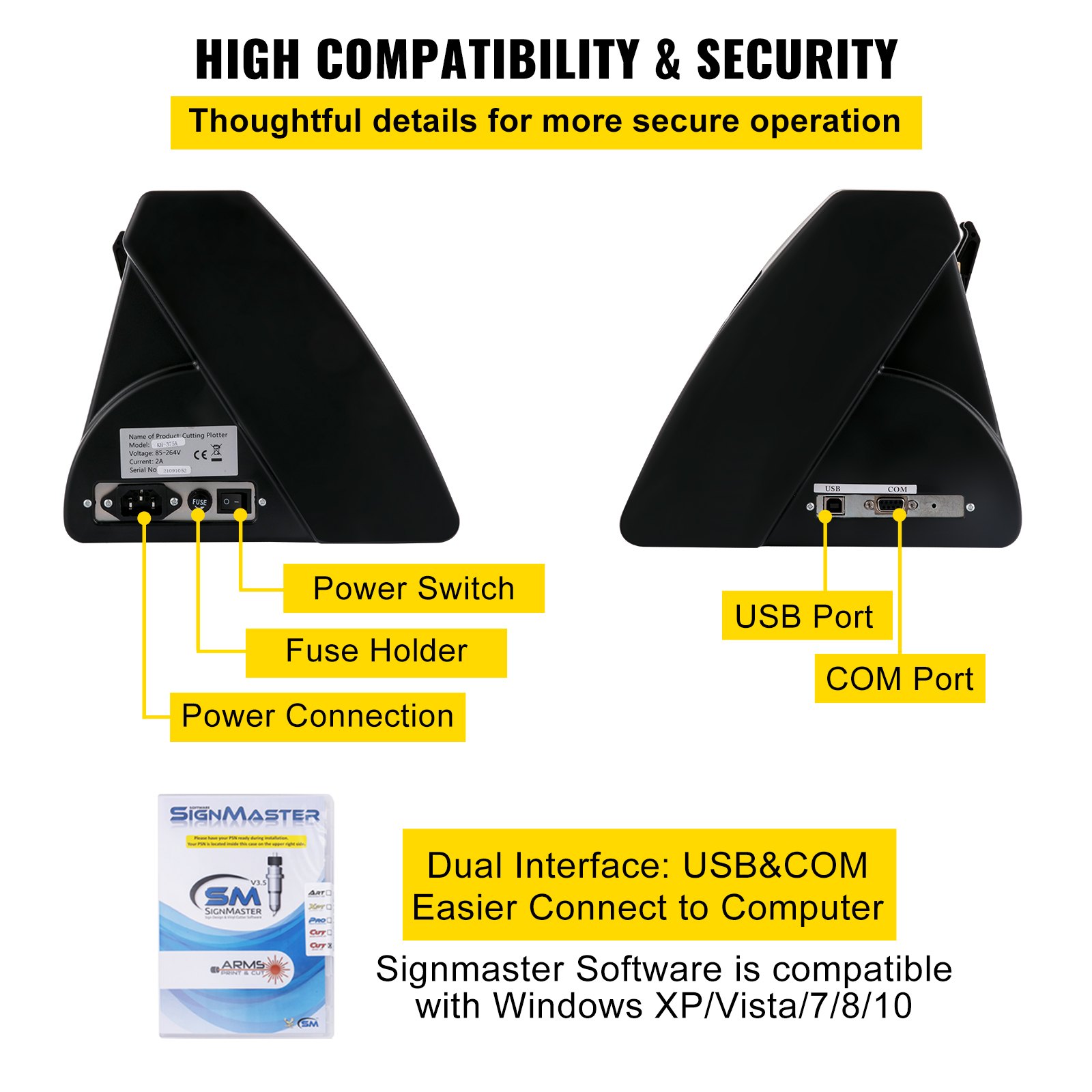 VEVOR ploter za rezanje vinila, maks. uvlačenje papira 720 mm, sila rezanja vinila 500 g, ploter s optičkim okom, softver Signmaster, koračni motor, poluautomatski ploter s postoljem