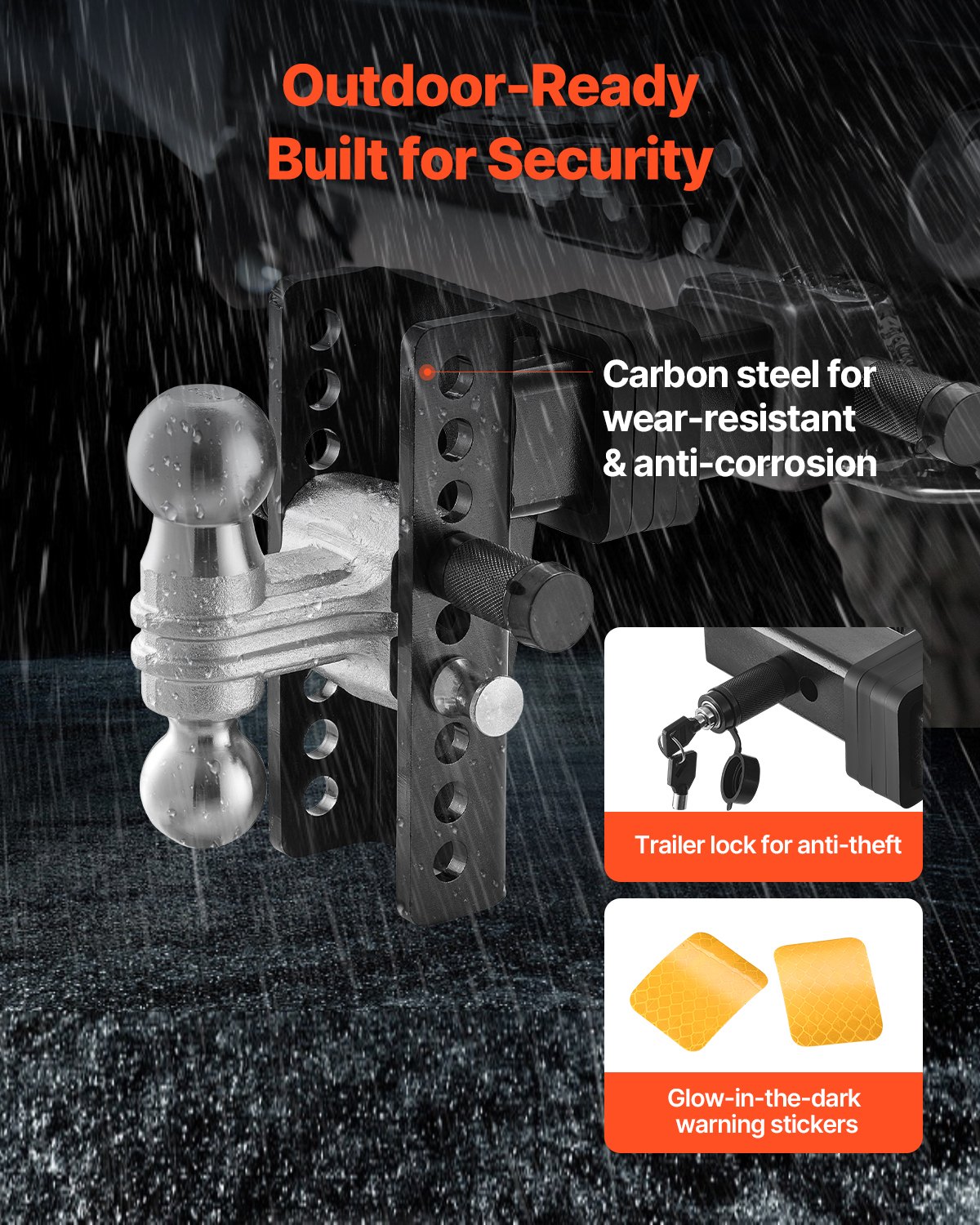 VEVOR Podesiva kuka za prikolicu, kuglasti nosač, odgovara prijemnicima od 63,5 mm, kuka za teške uvjete rada s kuglama od 50 mm i 58,7 mm, bruto težina 10 000 kg, kuka za prikolicu s protuprovalnom iglom