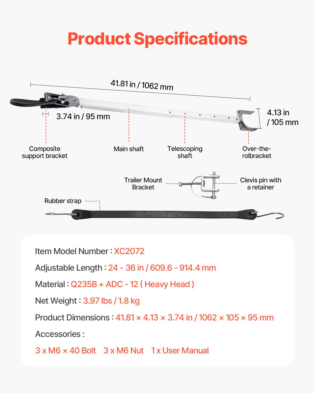 Podesiva duljina: 24-36 in / 609,6-914,4 mm, Neto težina: 3,97 lbs / 1,8 kg, Dimenzije proizvoda: 41,81 x 4,13 x 3,74 in / 1062 x 105 x 95 mm, Broj modela artikla: XC2047