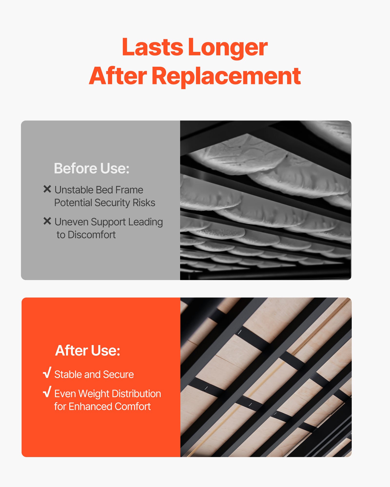 VEVOR Bunkie Board sklopive letvice za krevet za dvije osobe s priključkom, drveni nadmadrac, potpora za ispod madraca, spremno za upotrebu, set od 8 dijelova, letvice od prirodnog drva