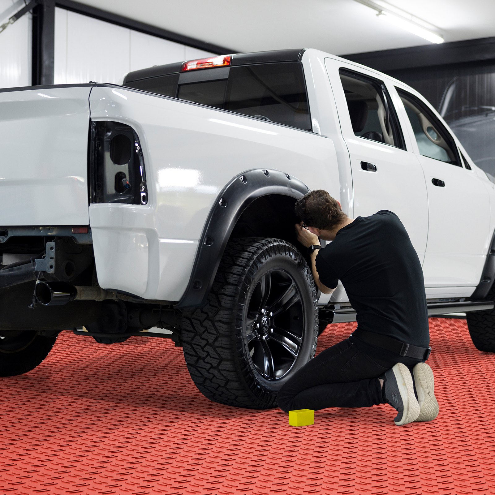 Podne obloge za garaže, 305 x 305 x 13,4 mm, set od 50 dijelova, industrijski podovi, protuklizni dvostrani teksturirani pod za garaže, za garaže, podrume, servisne radionice, crveni