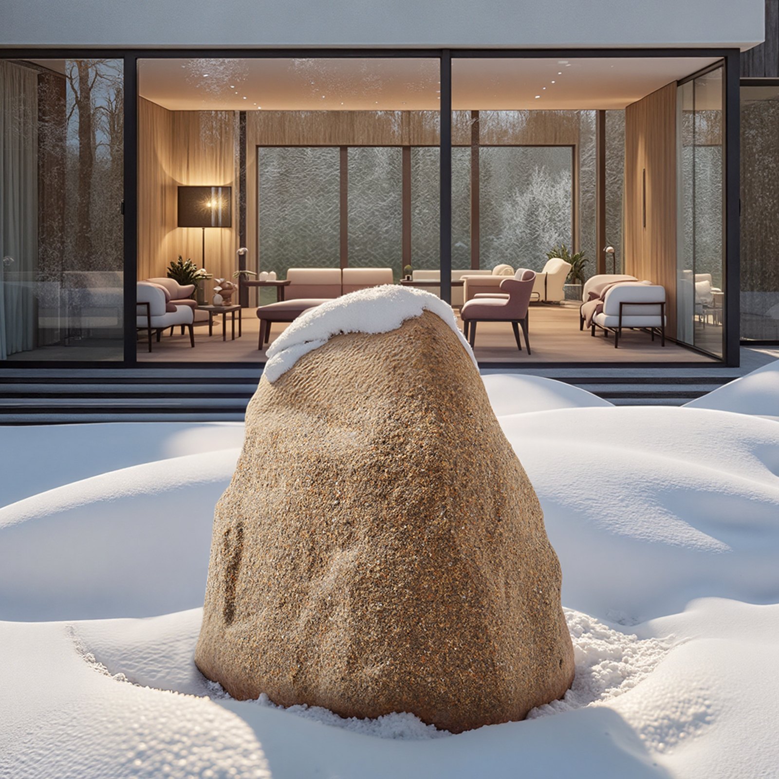 Pokrivna stijena, Umjetni kameni pokrov za vanjsku upotrebu, Vrtni kamen, Lagani i vremenski otporni umjetni kamen za uređenje okoliša, Vrtni dekor, Kuća transformator, Pješčano smeđa, Veličina S