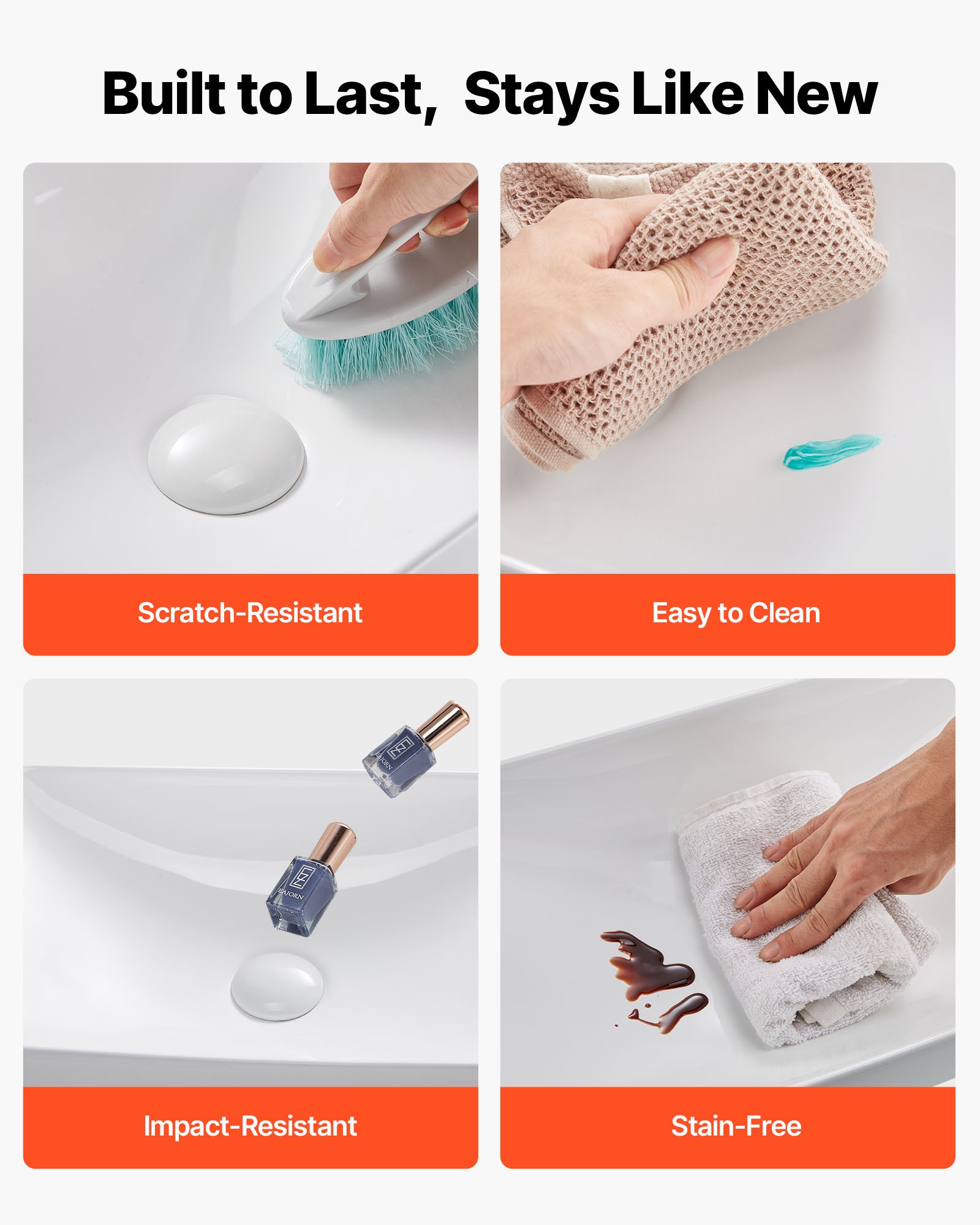 VEVOR Poluugradbeni umivaonik 490 x 305 mm Pravokutni umivaonik za radnu površinu s otvorom za odvod od 45 mm, Moderni ugradbeni umivaonik za male prostore, kuhinje, kupaonice, Bijela