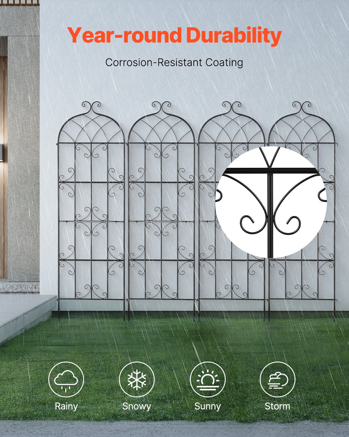VEVOR Potpora za penjačice, 51×180 cm, Set od 4, Nehrđajuća metalna rešetka za vrtno cvijeće, Okvir za penjačicu za ruže, Pomoć pri penjanju, Potpora za krastavce, Ukrasna rešetka za klematis za dvorišta i dvorišta. Travnjak