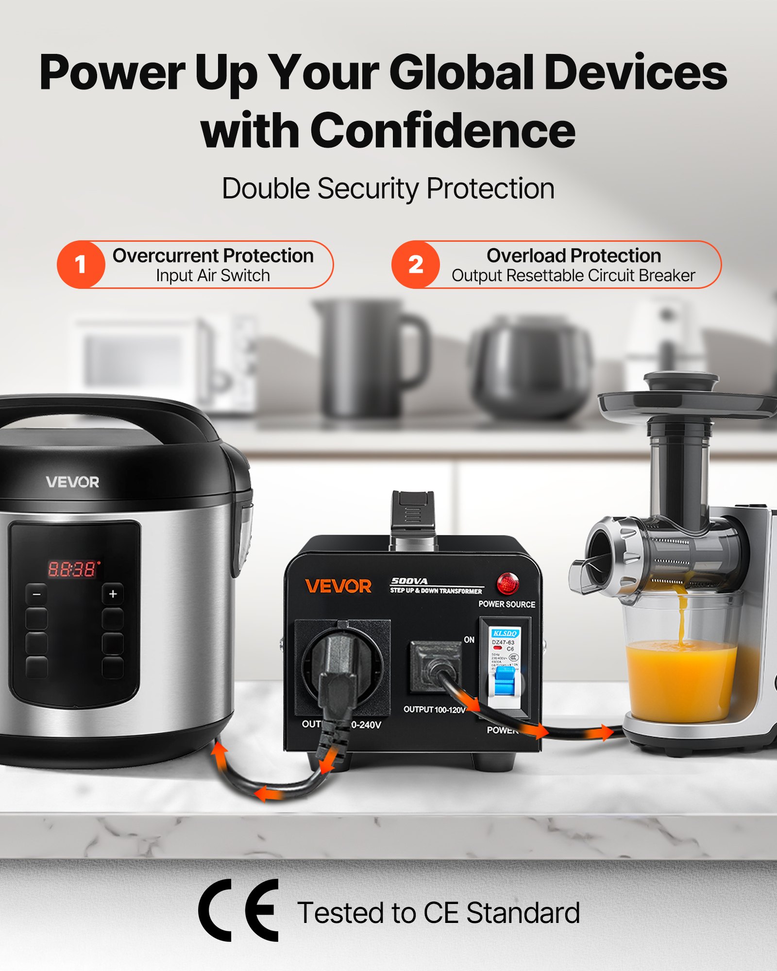 VEVOR pretvarač napona, transformator, 500VA, transformator za povećanje/smanjenje napona, pretvara 110V na 220V i 220V na 110V, s US/EU utičnicama, kabelom za napajanje, osiguračem
