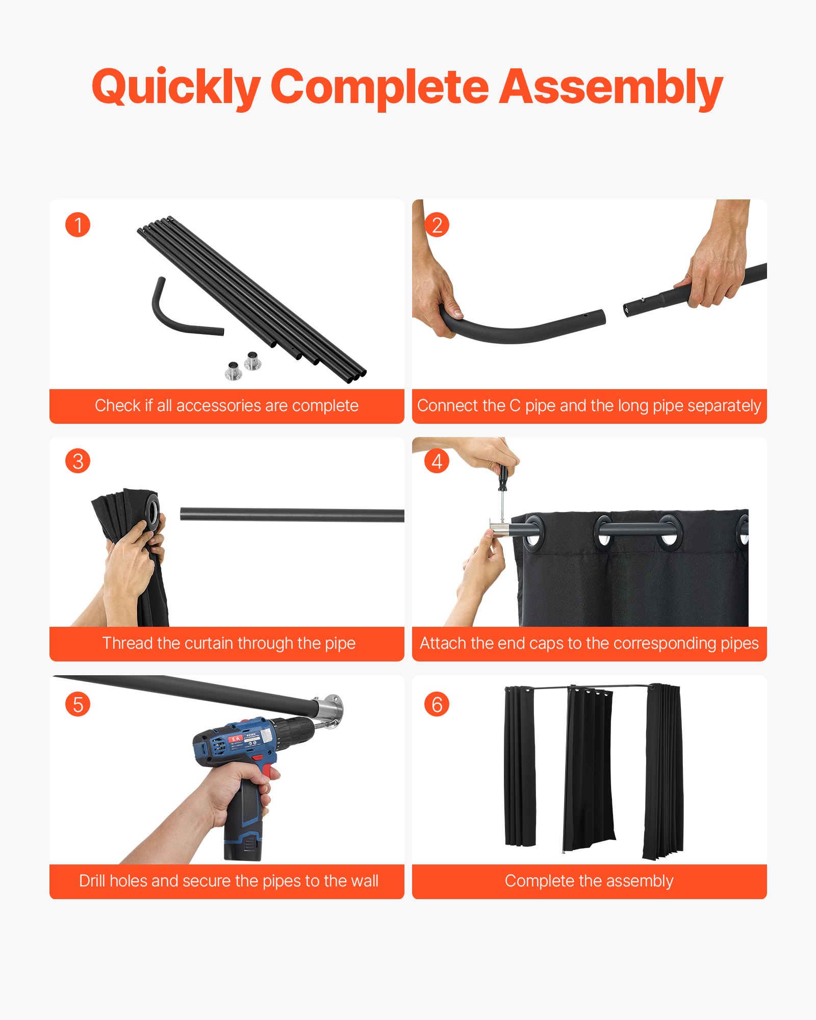 VEVOR Prijenosna svlačionica s debelim poliesterskim zavjesama, dvostruke kabine za presvlačenje s pregradnim zavjesama, za butike, trgovačke centre, krojače, 200 x 100 x 200 cm (crna)