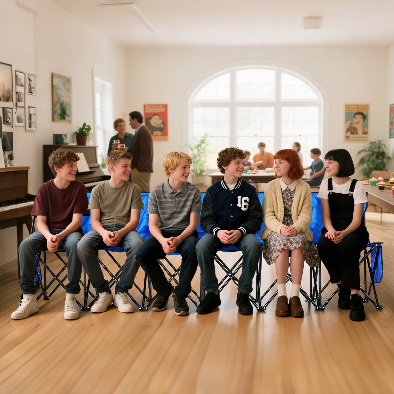 Prijenosna timska klupa, kamperska klupa (4 osobe) s bočnim džepovima i torbom za nošenje, sklopiva klupa s naslonom, bočna klupa za nogomet, bejzbol, vanjska upotreba, plava