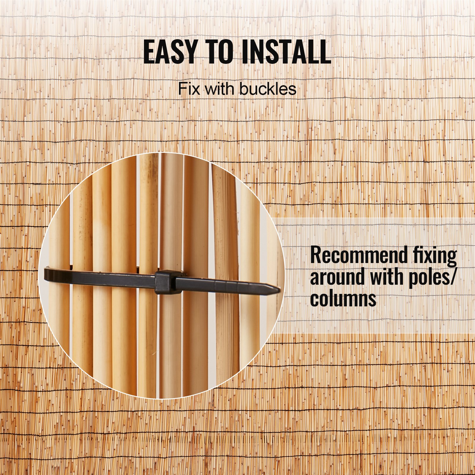 Veličina proizvoda: 9,8 x 3,3 ft / 3 x 1 m, Boja: Prirodna boja drva, Traka: Pamučno uže, Količina: 1 set, Težina proizvoda: 3,7 lbs / 1,7 kg ± 5%, Materijal: 100% prirodna trska, Broj modela artikla: LLWL9833N